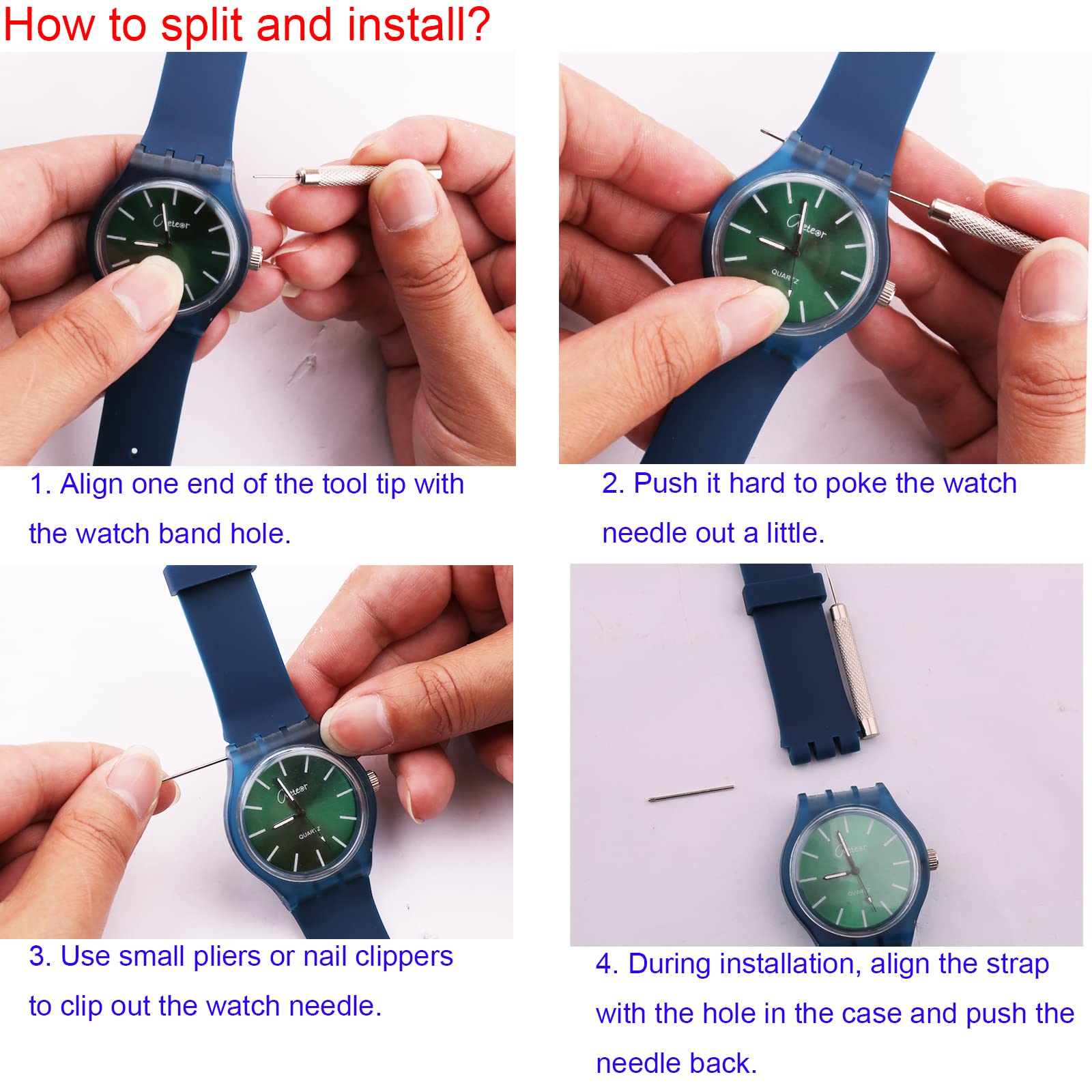 Product Include: 1× 16mm replacement ladies watch band + 1× strap removal tool + 1× plastic buckle+ 2 × quick release spring lever. Using the included replacement tool, you can quickly install the strap.