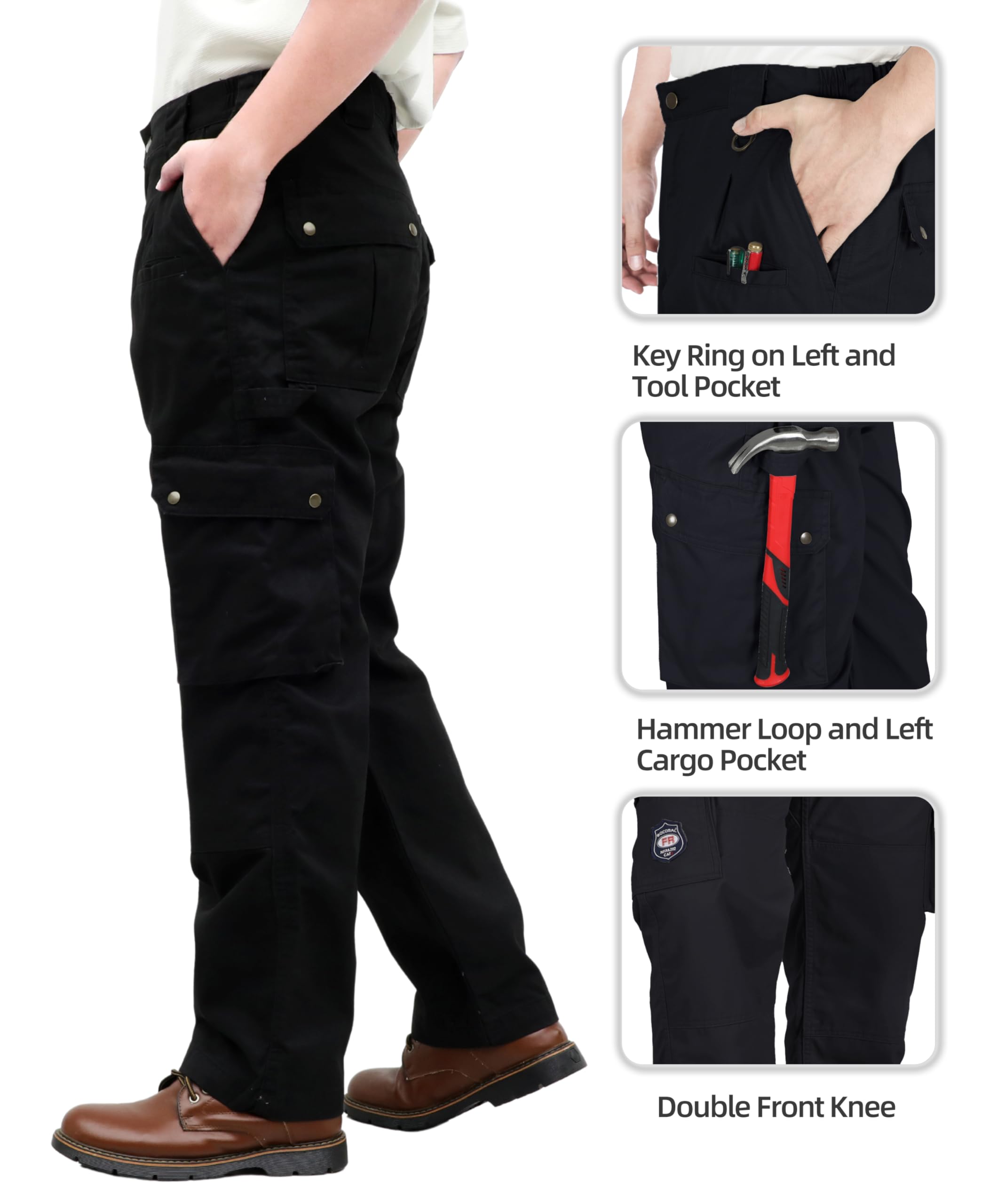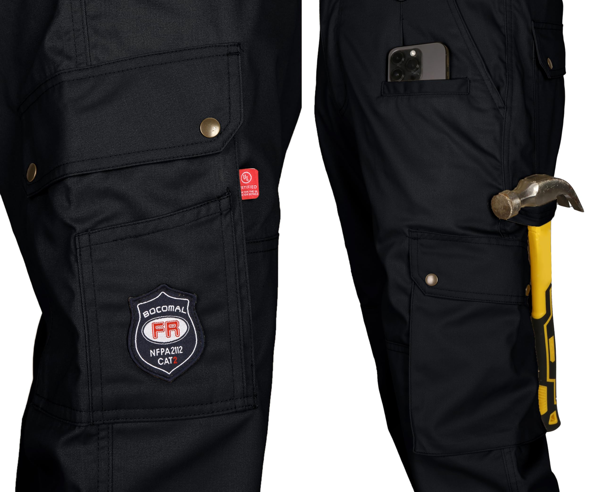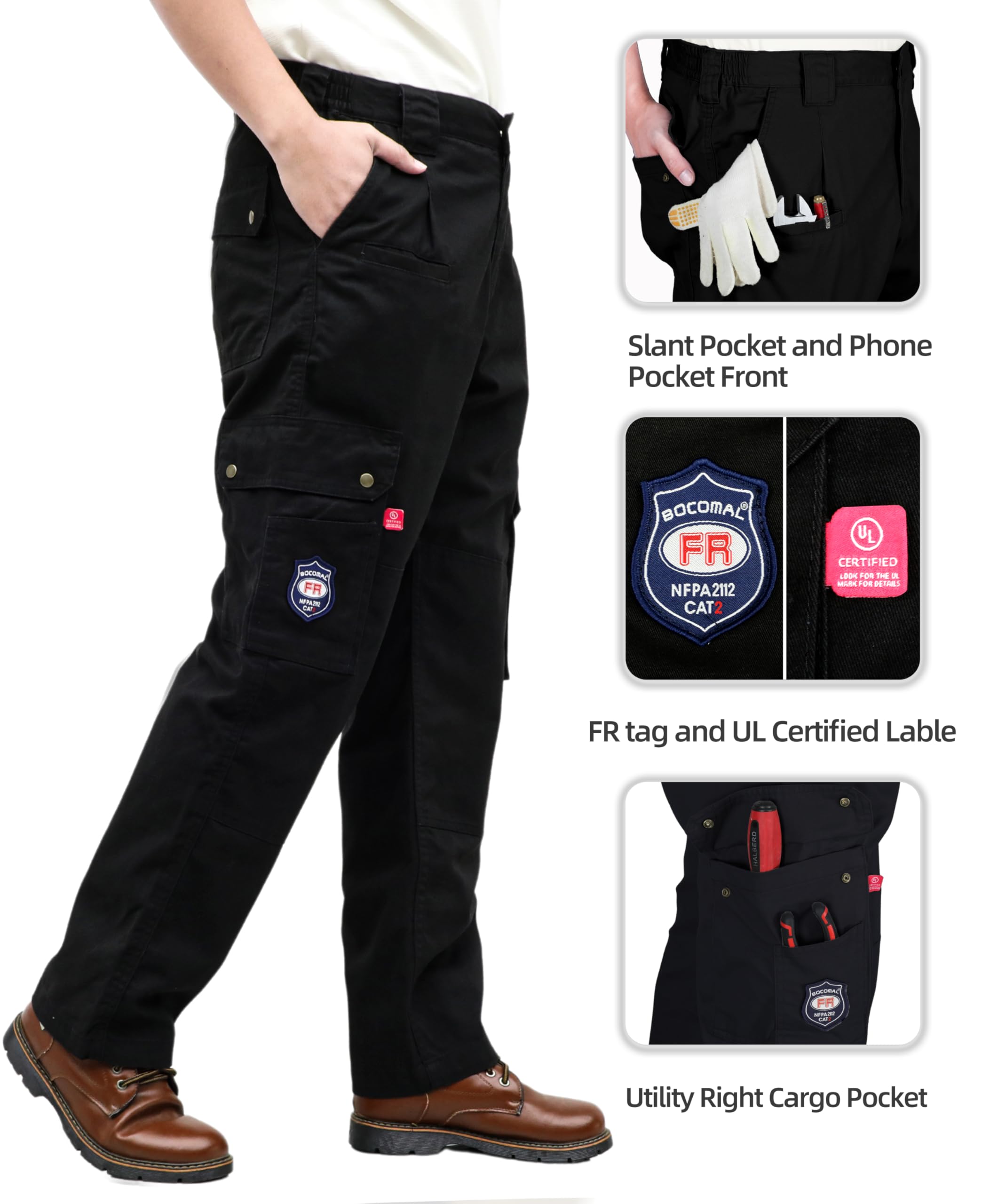 This FR Work Pant has 9 Pockets And Elstic waist band, Provides A Perfect And Comfortable Relaxed Fit. Also Soft And fashionable.We Did Prewash/ Preshrunk And Wrinkle-Free.Machine Wash No Shrink! Double needle stitching on outseam. Left and right cargo pockets at the thighs with flaps to keep items secure.