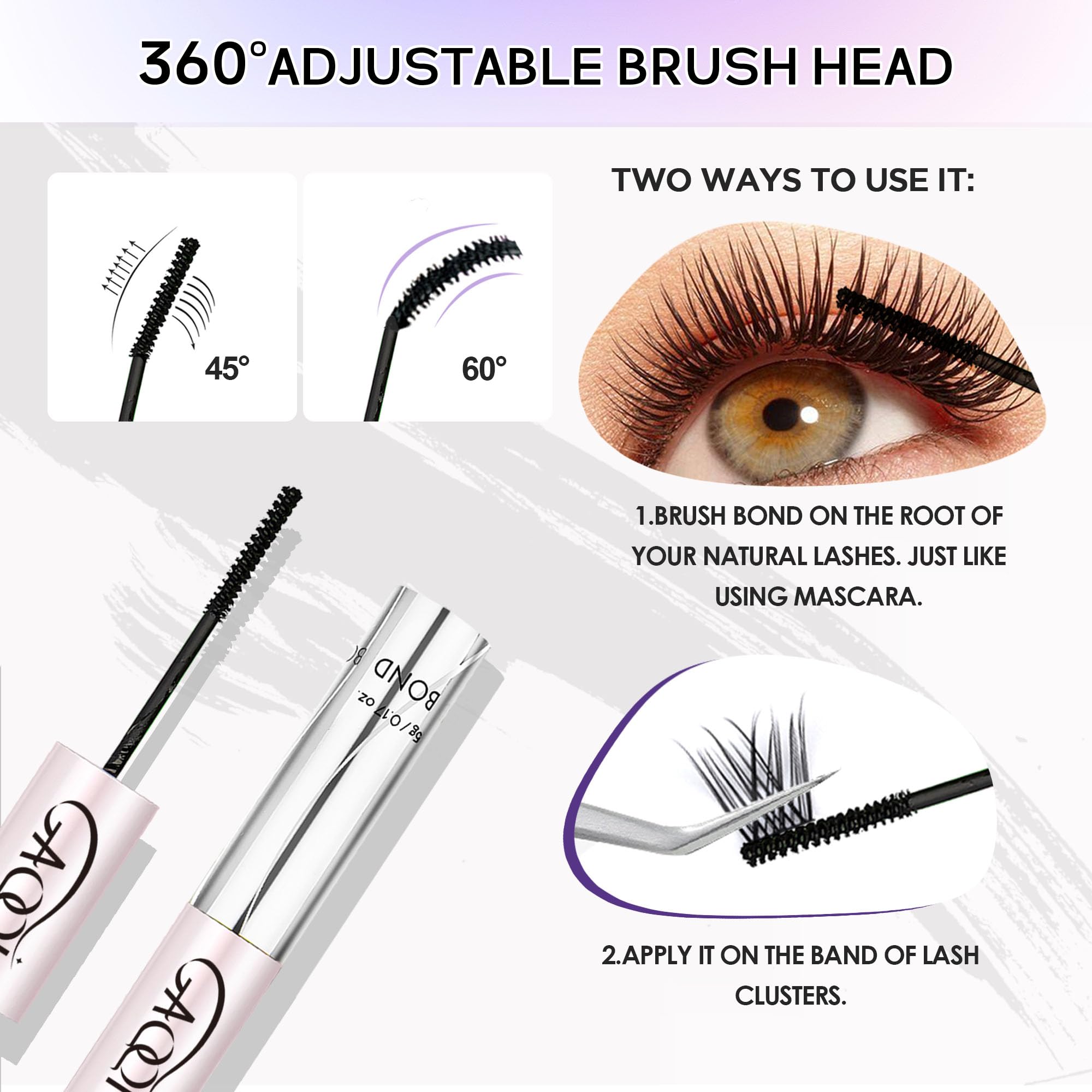【WATERPROOF LASH GLUE】Double-sided tube design, including strong hold glue for lash clusters and protective layer of lash seal.It can make your DIY eyelashes last for 48-72 hours, and you don't have to worry about eyelash shedding in swimming, surfing.