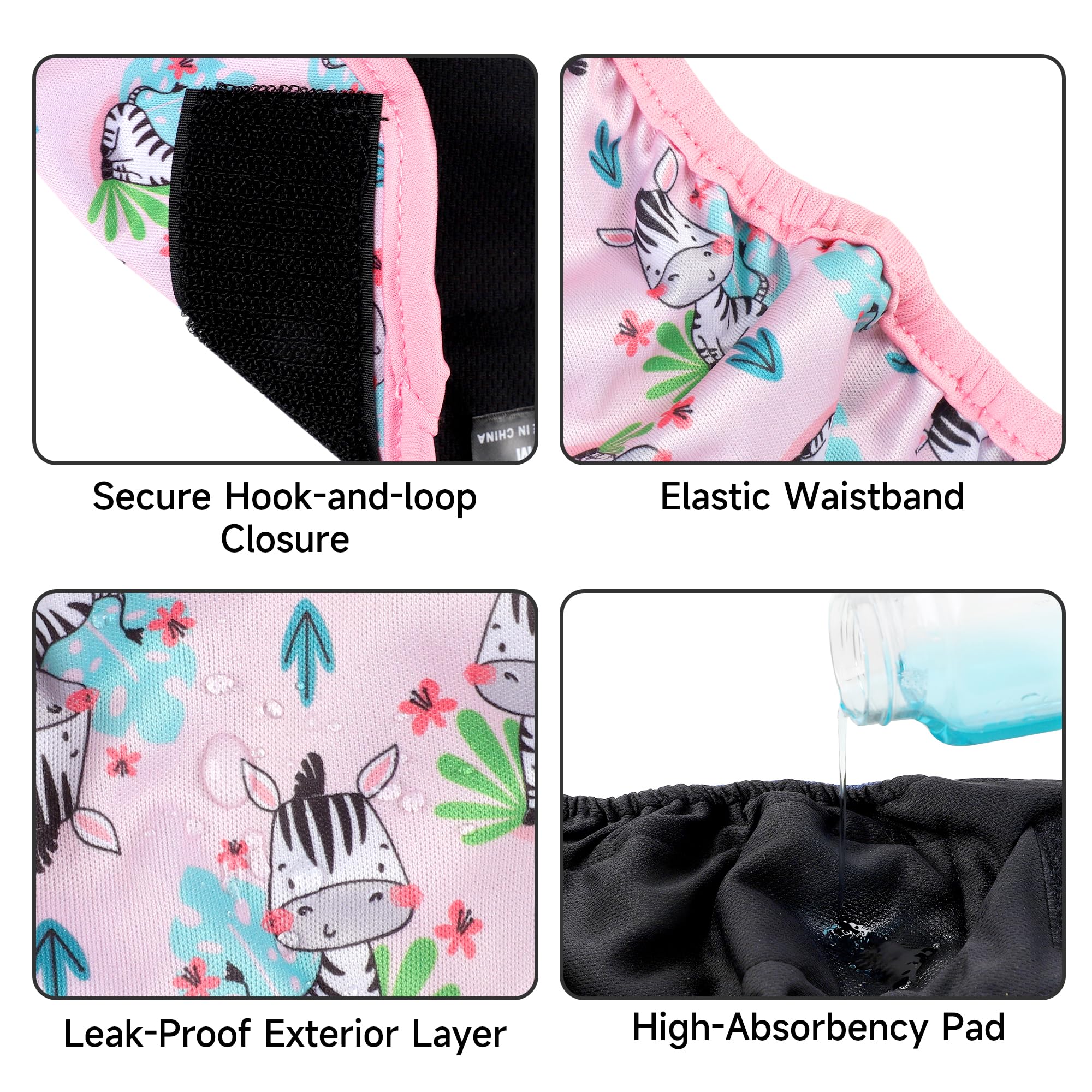 Adjustable and Secure: Back snaps for customizable sizing, strong hook-and-loop closures, and leg elastics for a snug fit and full coverage. Easy to put on and take off.