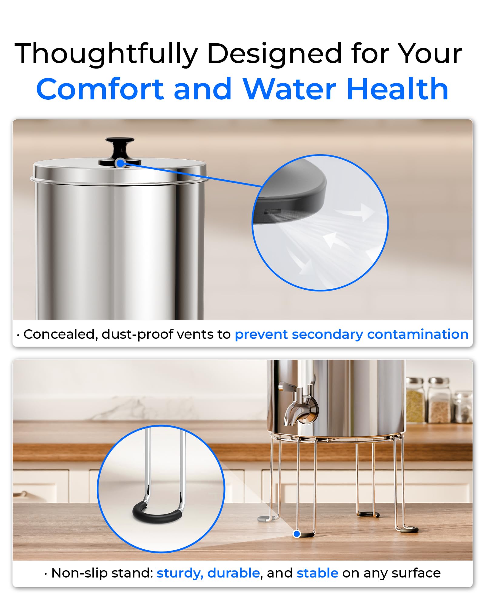 Designed for Your Comfort and Safety: The non-slip stand ensures sturdiness, durability, and stability on any surface, making it a reliable choice, even when compared to the Berkey water filter system.