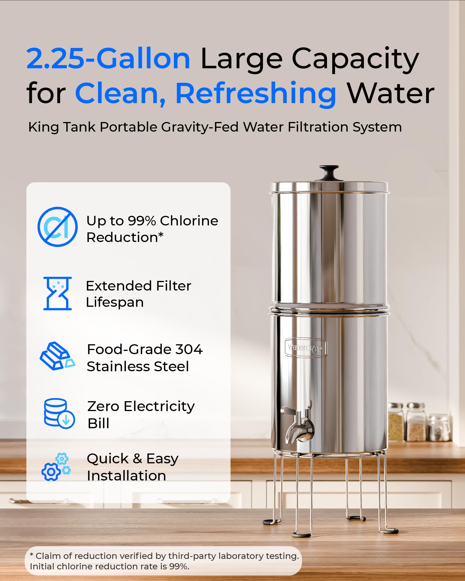 5-Stage Filtration for Cleaner Water: This gravity water filter reduces chlorine by up to 99% for healthier hydration, while helping to improve taste and reduce odors, sand, rust, sediments, heavy metals, and other impurities. Verified by third-party laboratory testing, it ensures cleaner and better-tasting water for everyday use.