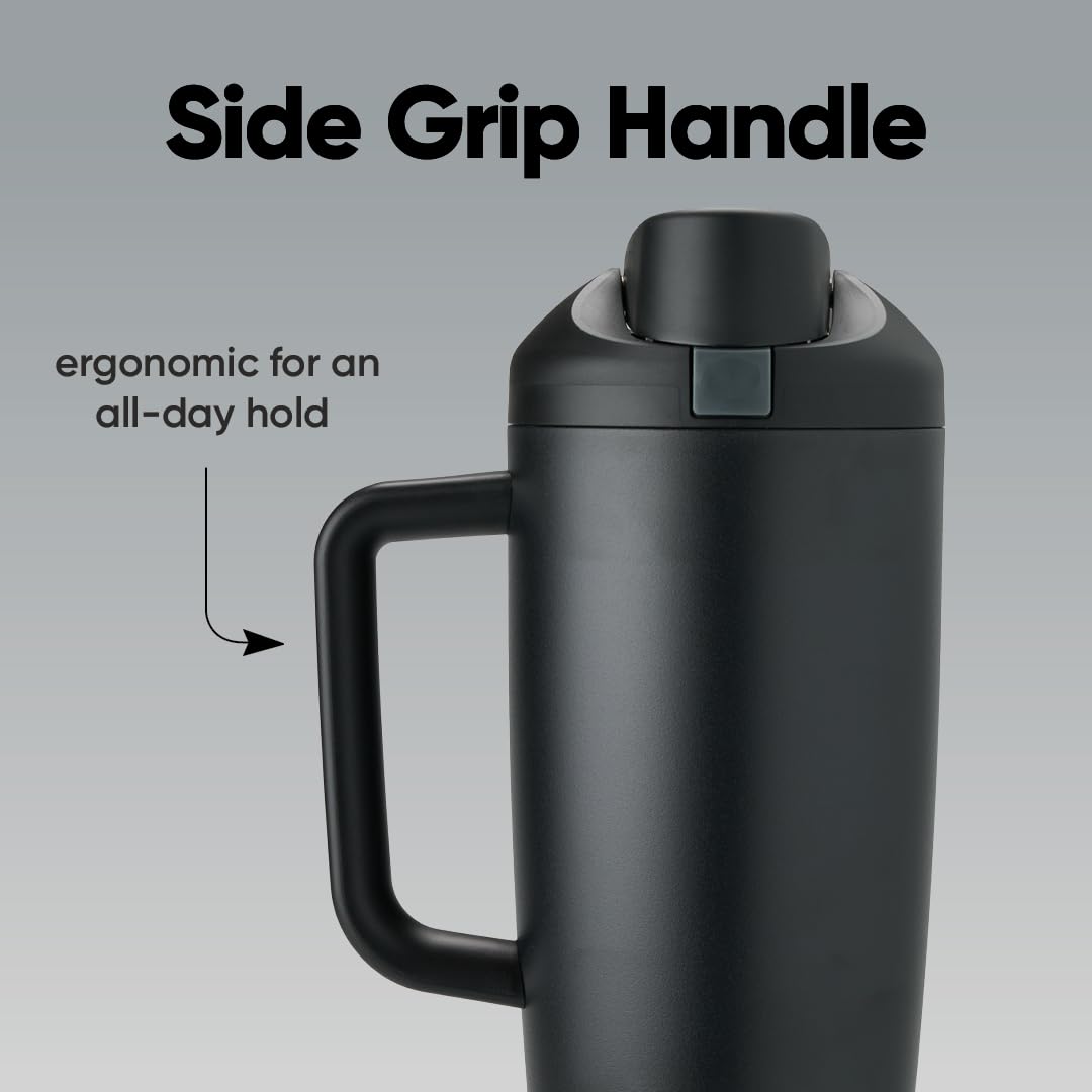 40-ounce insulated stainless-steel tumbler with FreeSip spout and push-button lid: For serious hydration; durable, unique design and patented spout; convenient push-button lid for easy opening