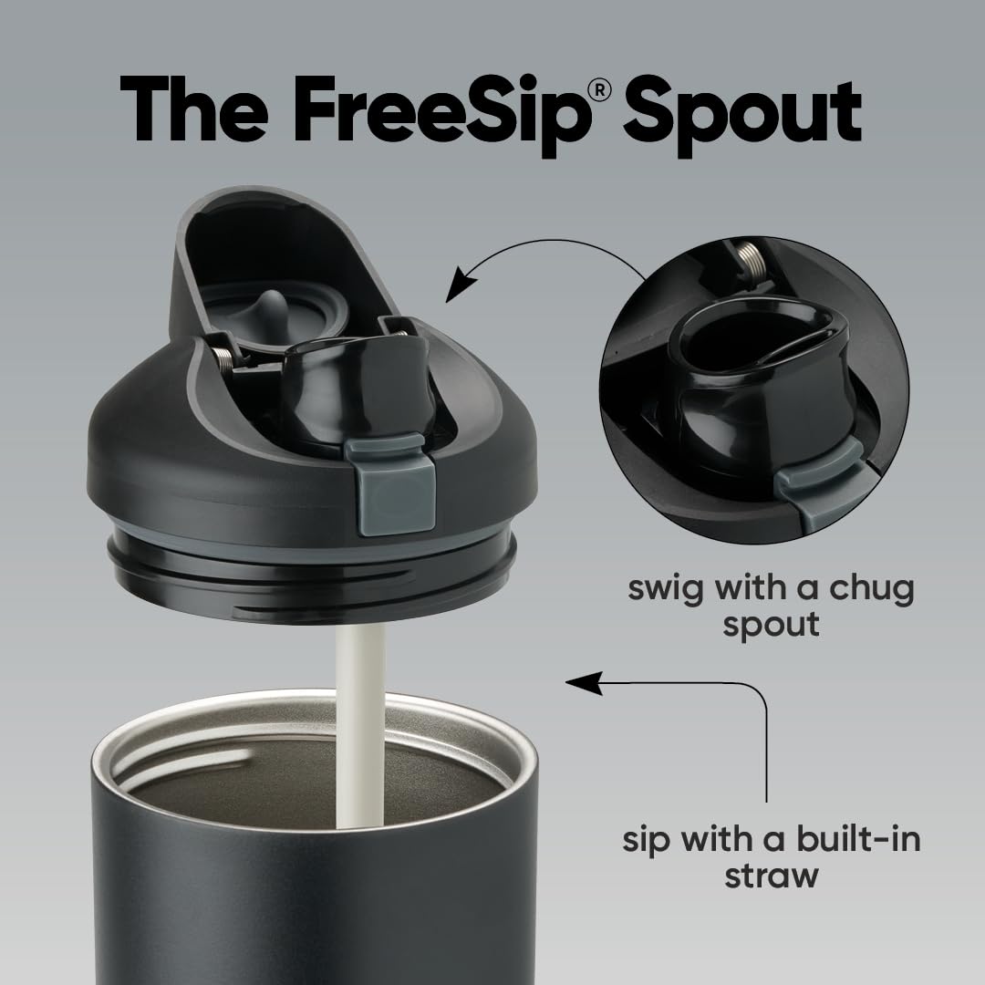 Versatile FreeSip spout lets you choose how you drink: Patented 2-in-1 FreeSip spout gives you two options when drinking; sip upright through built-in straw or swig by tilting back the spout opening