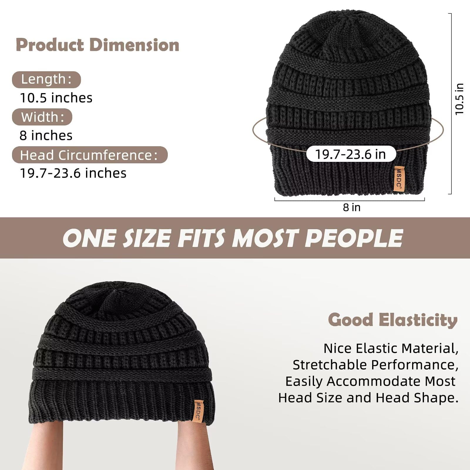 [Premium Comfort Material]: MSDC winter hats for women are 100% acrylic made, soft, breathable, and skin-friendly on the outside. The inner layer is made from silky satin lining, delicate, and smooth to the touch. The beanie is of moderate thickness and suitable for Autumn and Winter, providing you with comfort and warmth while keeping you stylish.