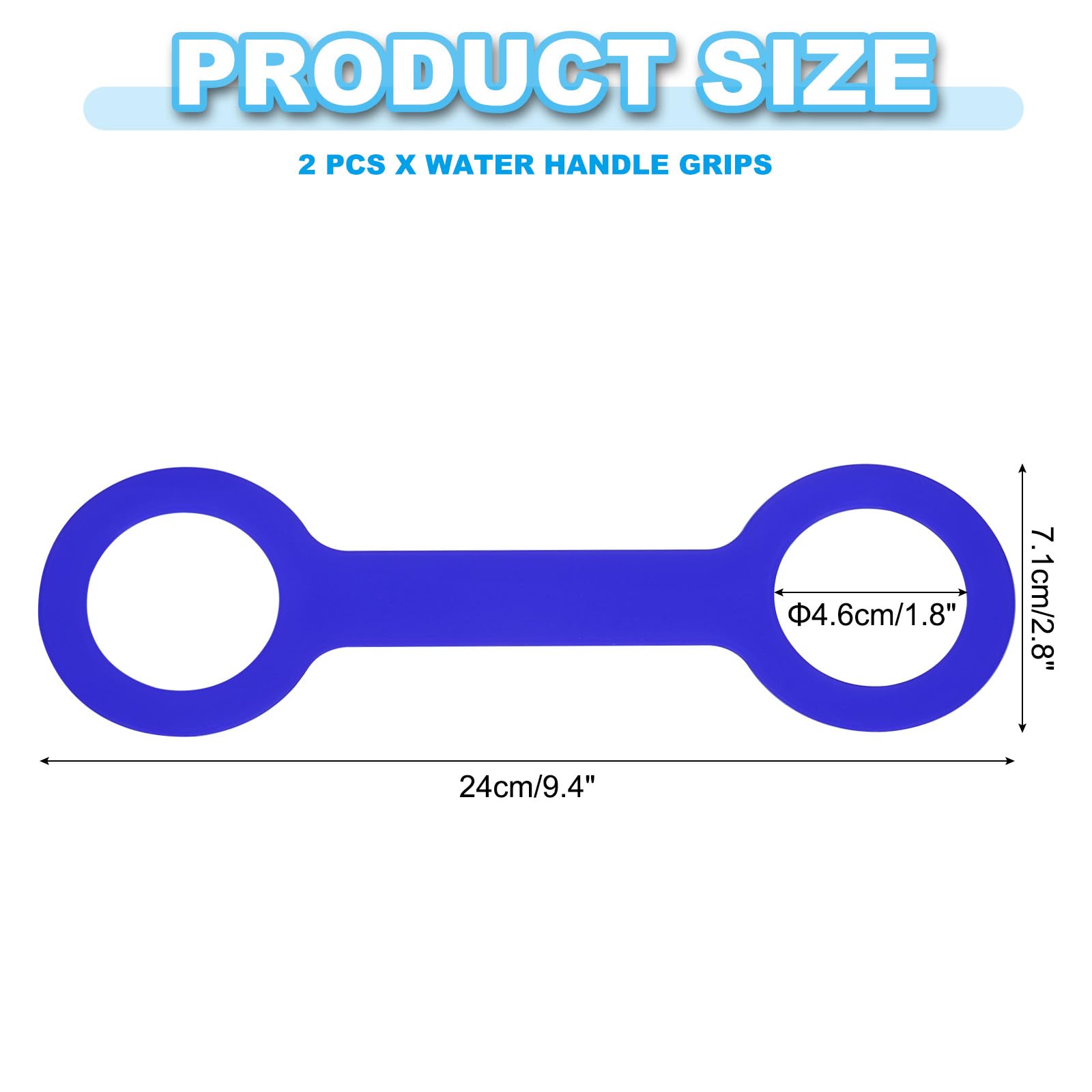 This water handle grip is a great tool to free your hand in outdoor activities such as walking, running, hiking, picnics, sports events, jogging, fitness classes, home, classroom, office, or cycling. Specification Material: Silicone Color: Blue Inner Diameter: 4.6cm/1.8 Inch Outer Diameter: 7.1cm/2.8 Inch Length: 24cm/9.4 Inch Thickness: 3mm/0.12 Inch Suitable for 500ml to 1000 ml cup Packing List: 2 Pcs x Water Handle Grips Advantage Soft Material: This handle grip is expertly crafted from soft adjustable silicone, offering resilience, foldability, and resistance to wear and deformation. High elasticity can fit various bottles and fit snugly to prevent slipping. Enhanced Comfort: Lightweight and equipped with non-slip properties, these water grips provide a comfortable grip on your water cup, allowing you to conveniently free up your hands. Wide Applicability: Fits most standard water bottles and cups, making it a versatile accessory for everyday use Instruction Easy to use. Directly tie one end to the bottle top and the other end to the bottle bottom. You can also hang it around your waist Note Please check the size before purchasing.