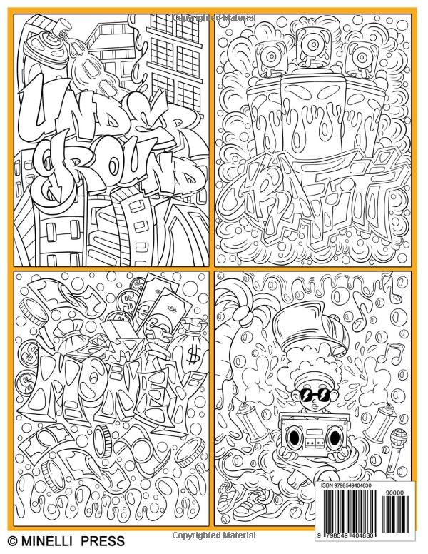 - GRAFFITI AND STREET ART COLORING BOOK Enjoy hours of meditative relaxation and creativity by coloring beautiful Graffiti illustrations. This coloring book is ready to decorate with markers, colored pencils, gel pens, watercolors, brush pens, or any coloring implements you prefer. Coloring Book Details : Each coloring page is printed on a separate page to avoid bleed through Designs of various styles for all levels of coloring enthusiasts Large 8.5 x 11" format Professional quality designs This adult coloring book makes a great and beautiful gift idea for Graffiti and Street Art lovers. ENJOY !