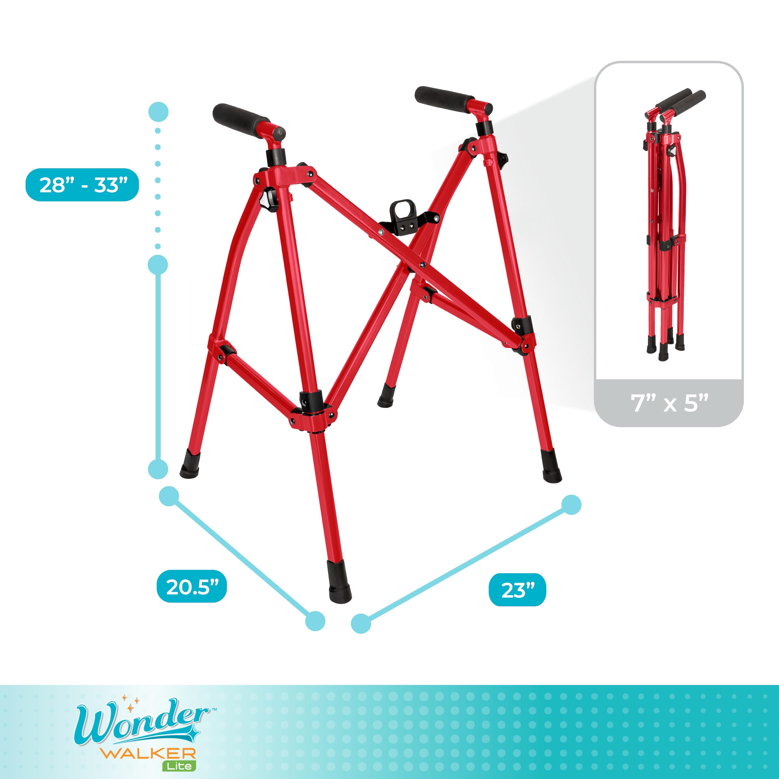 Compact Foldable Walker: With a compact design, the Wonder Walker Lite easily folds up like an umbrella stroller, taking up four times less space than the average walker; it's perfect for seniors who want to keep active and mobile on the go