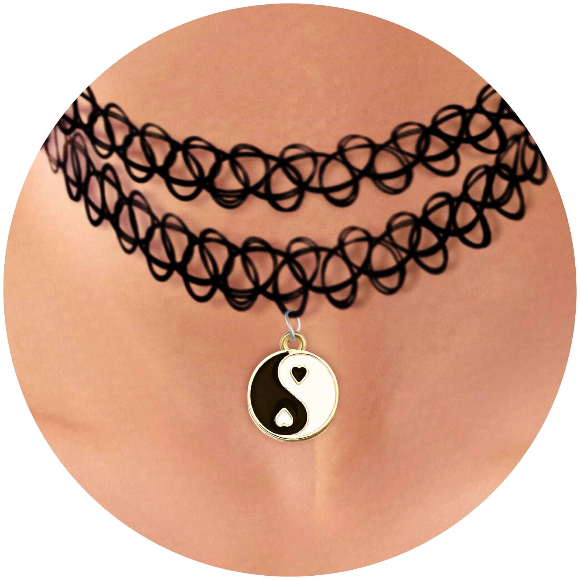 STRETCHY VINTAGE CHOKER NECKLACE: Inspired by 90s Henna Tattoo Designs, This Elastic Necklace Fits Comfortably and Complements a Variety of Styles - Perfect for Pairing with Classic Black Dress, Gothic Looks, 2000s-inspired Outfits, Rock Concerts, Beachwear, Halloween Costumes, or Holiday Parties