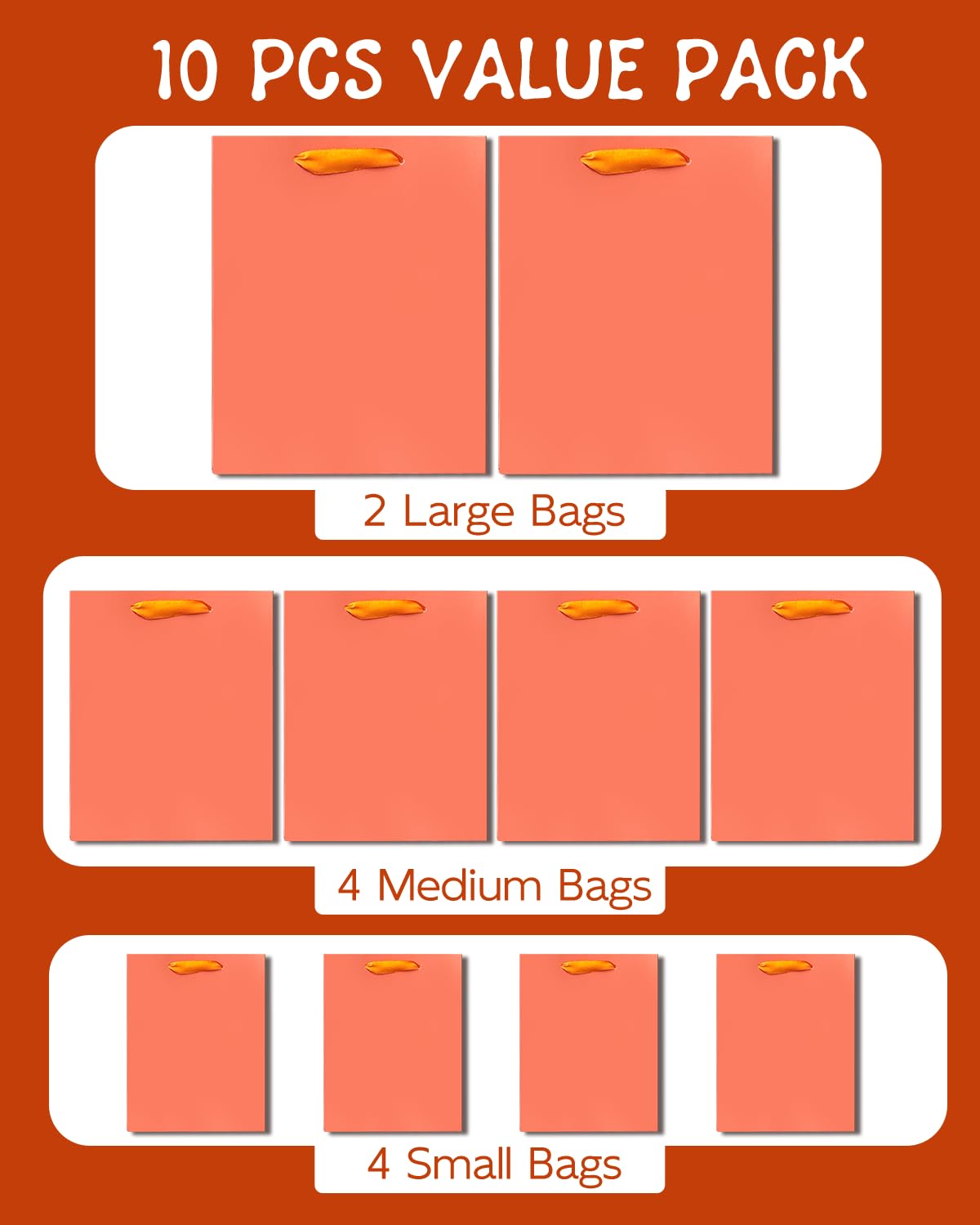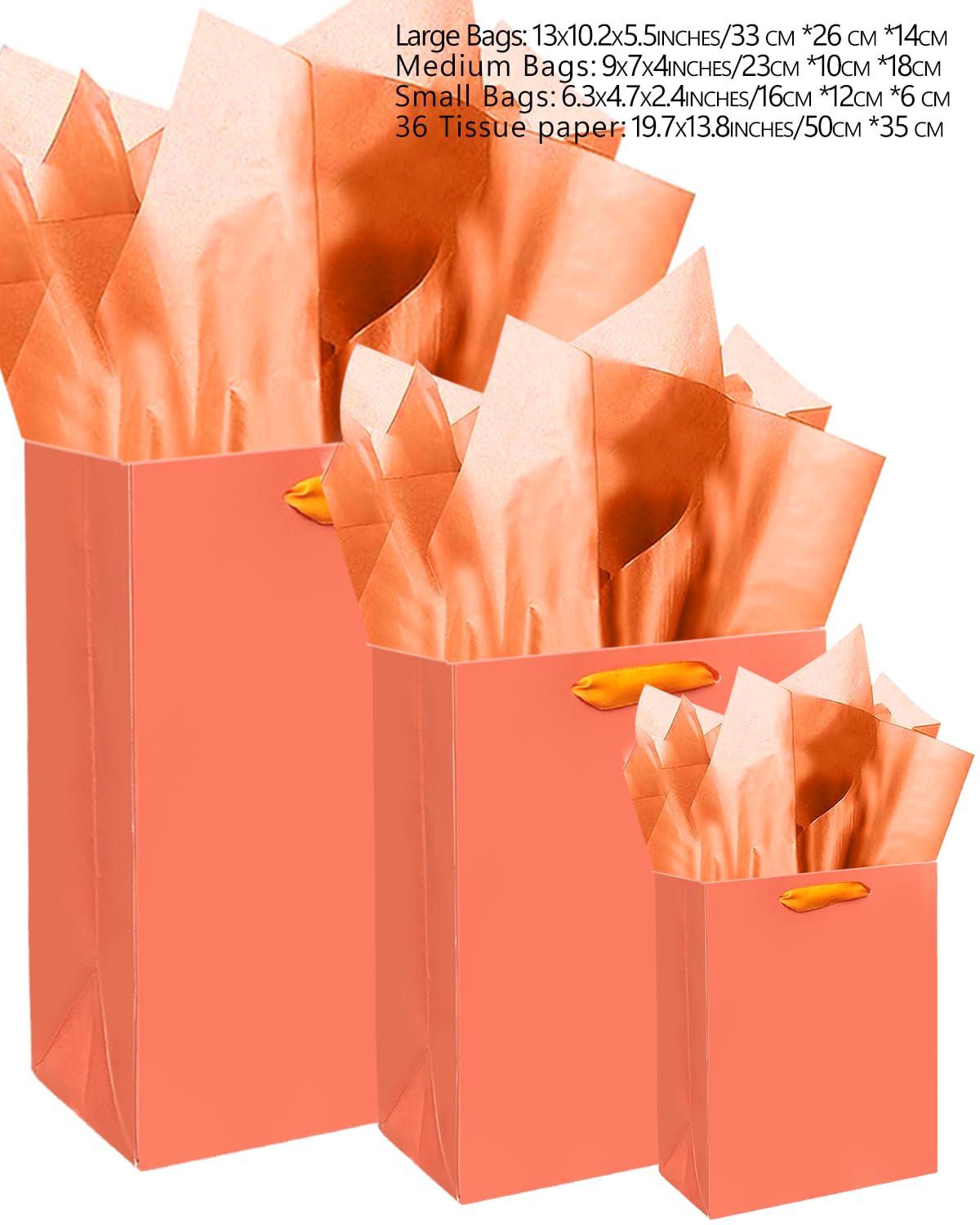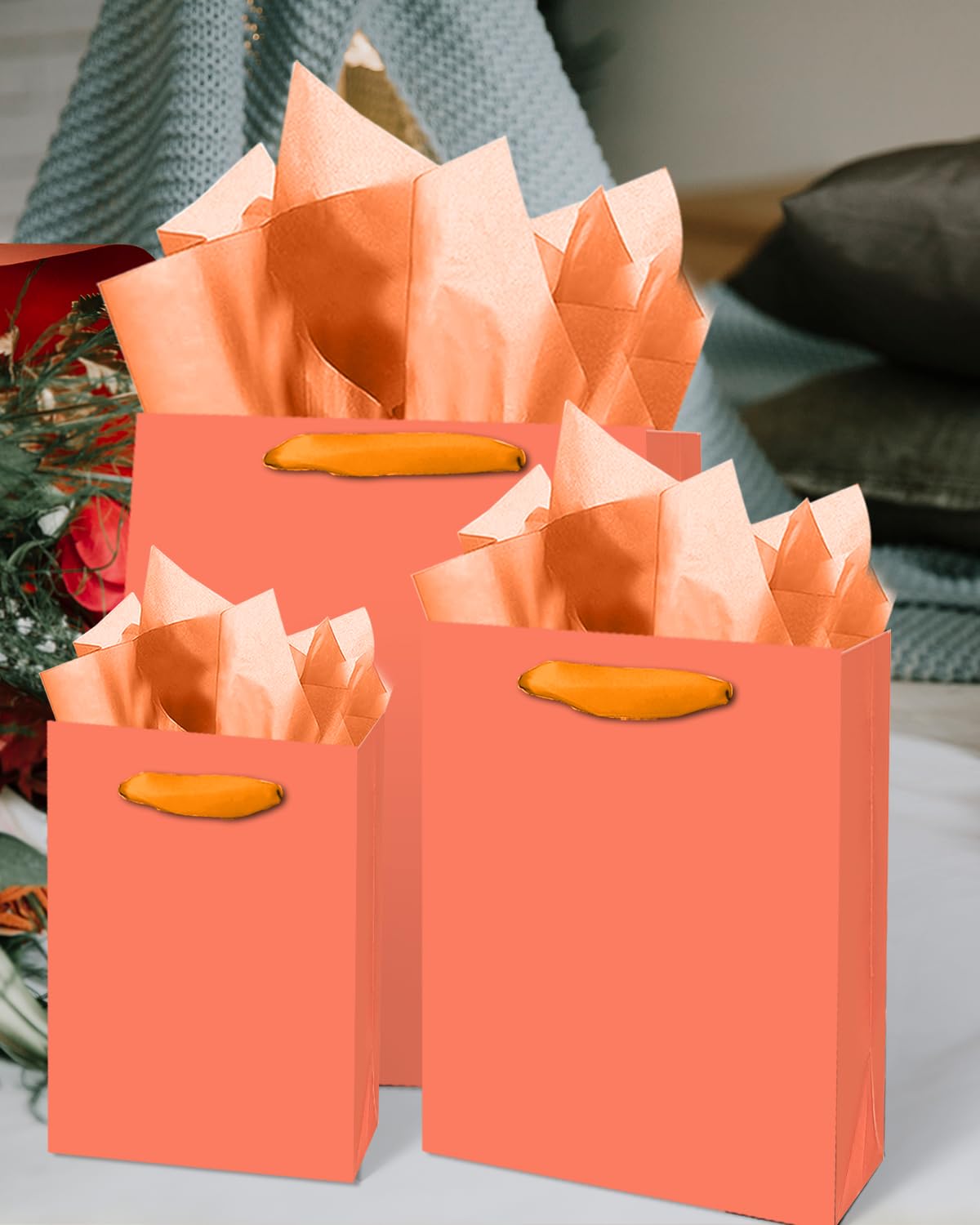 Size-Color: Pink-Orange / (2pcs Large 5.5x10.2x13inches, 4pcs Medium 4x7x9inches, 4pcs Small 2.4x4.7x6.3inches ) / 6Pcs Tissue Paper-13.8"x19.7",16Pcs Tissue Paper-9.8"x13.8"