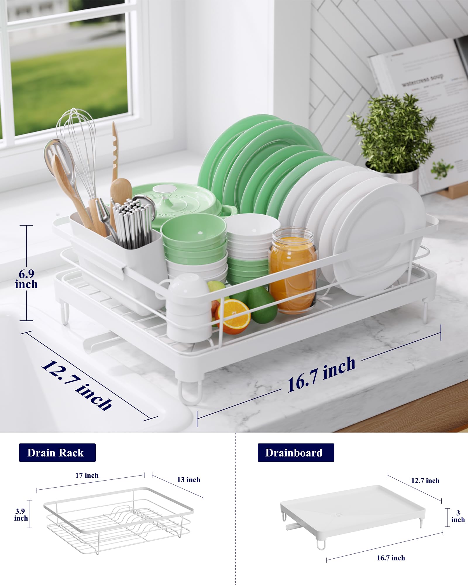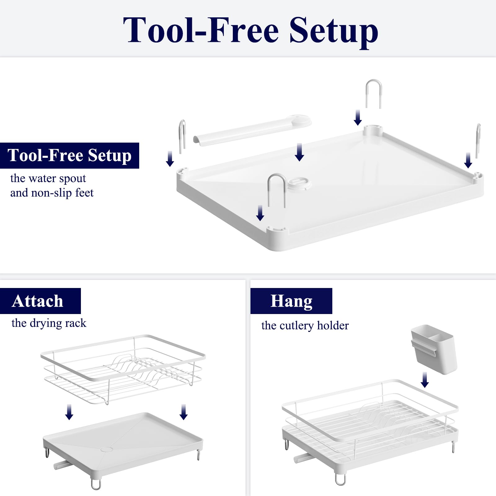 EASY TO USE: Kitsure drying rack for kitchen consists of a cutlery holder, a dish rack, and a drainboard set. With such a simple structure, it is easy to install as no tool is needed in the process. the dish rack stays firmly where it is.