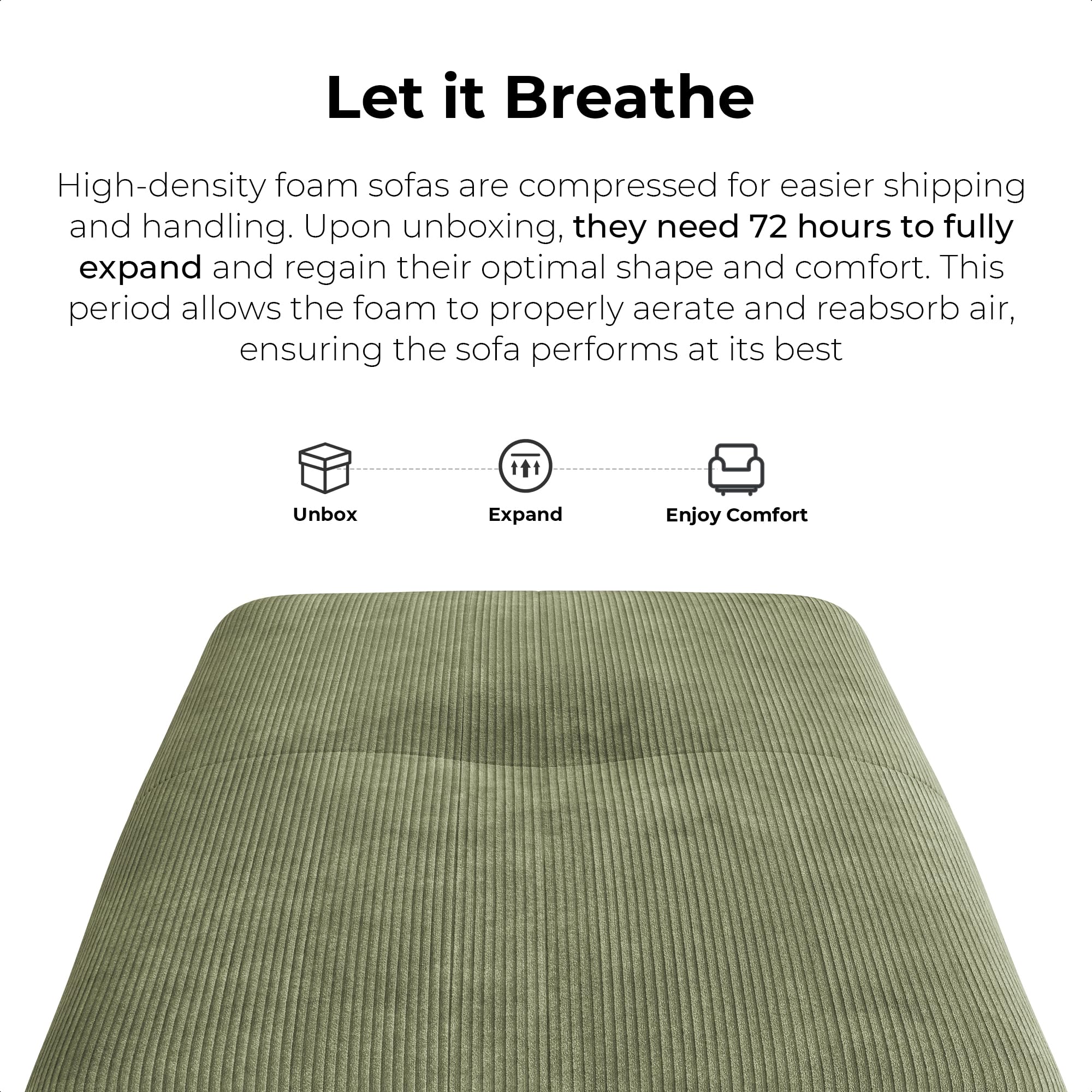 High-Density Foam Structure for Superior Comfort: Crafted entirely with high-density foam and no internal wooden frames, this modern sofa ensures exceptional support and lasting durability. The foam features fast rebound technology, retaining its shape while providing plush yet firm seating—ideal for daily use. Say goodbye to squeaky frames and hello to pure comfort