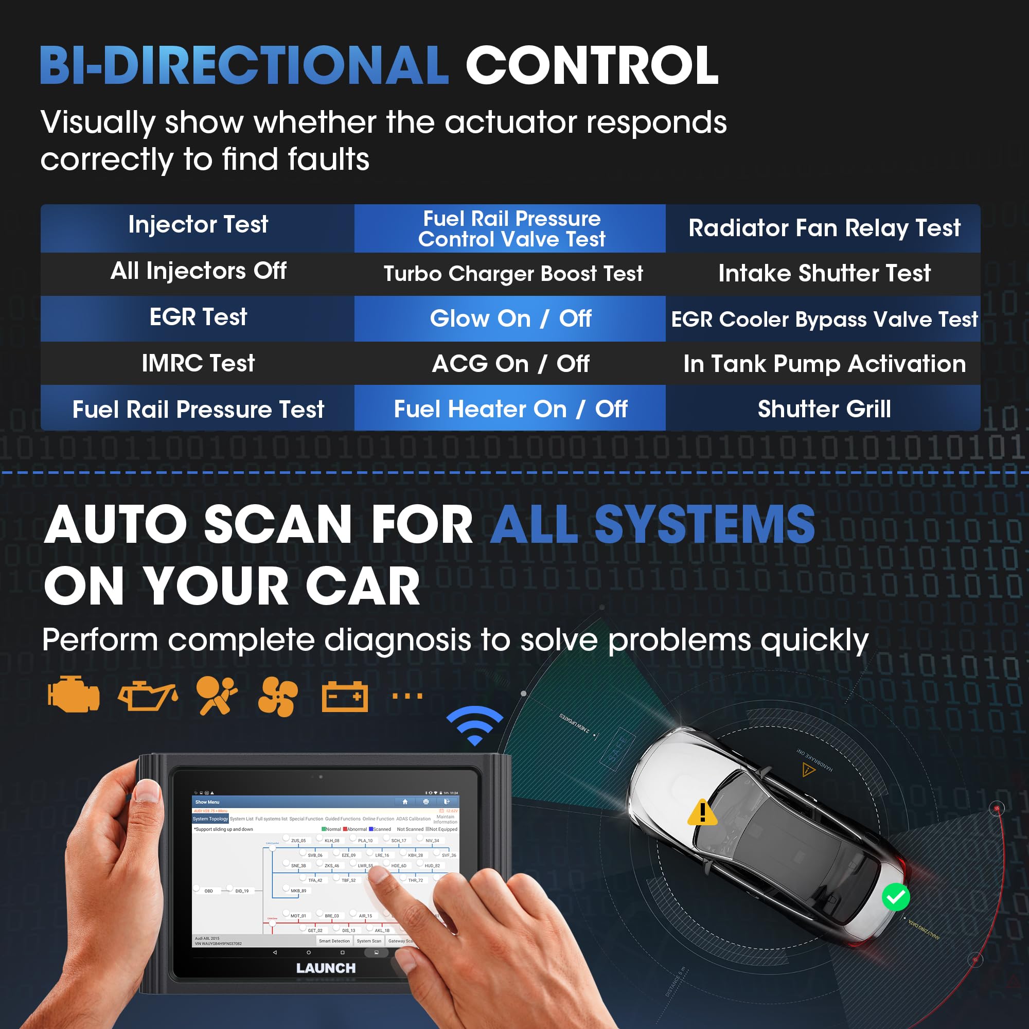 【ALL-SYSTEM DIAGNOSTICS FOR 99% OF VEHICLES & ONE-CLICK UPGRADE】Covering 99% of global car models, this tool performs full-system OE-level diagnostics: read/clear DTCs, live data stream, vehicle info, active tests, and special functions across ECM, TCM, ABS, SRS, BCM, Fue*l, Lighting, A/C, and more.🚩Enjoy one-click online upgrade for new features, wider coverage, and system optimizations.