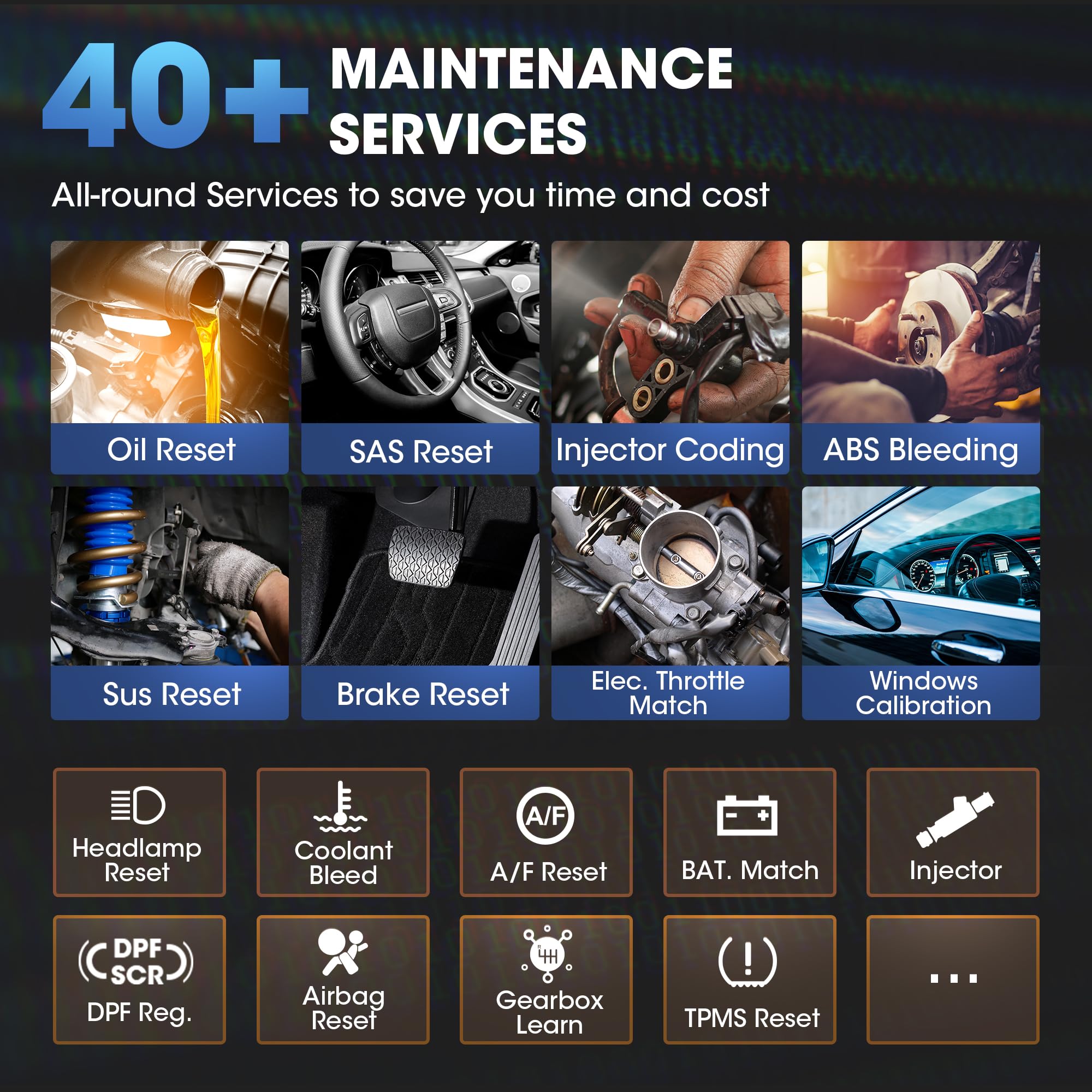 【50+ RESET SERVICES & ACTIVE TEST】X431 PADIII integrates over 50 specialty reset functions—including AdBlue, Headlamp, O*il, E*P*B, BMS, AFS, Suspension, TPMS, ABS Bleed, Throttle Matching, Injector C0ding, and Power Balance—to streamline repair workflows.🚩 Bi-directional control allows active testing of systems and components without manually operating vehicle controls.