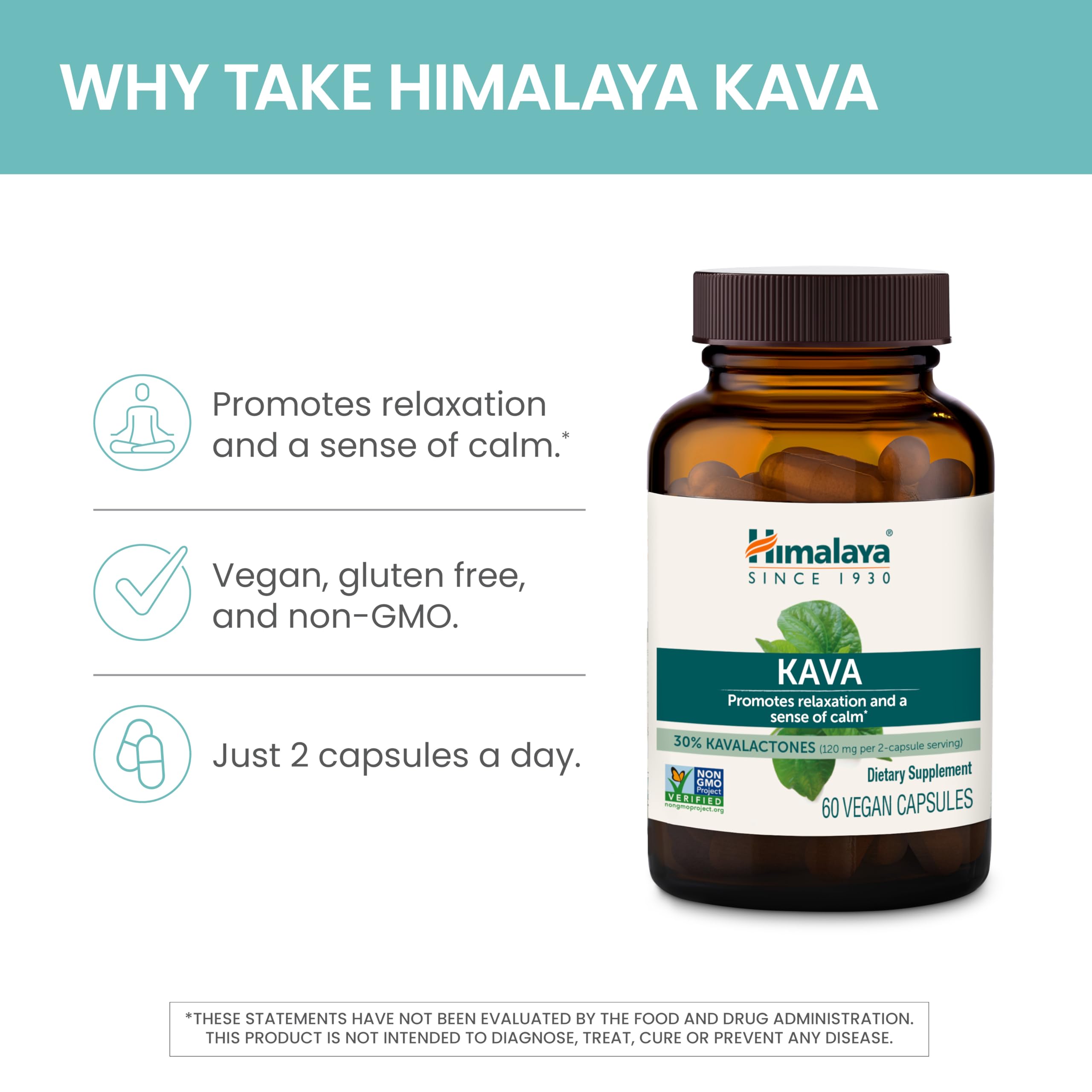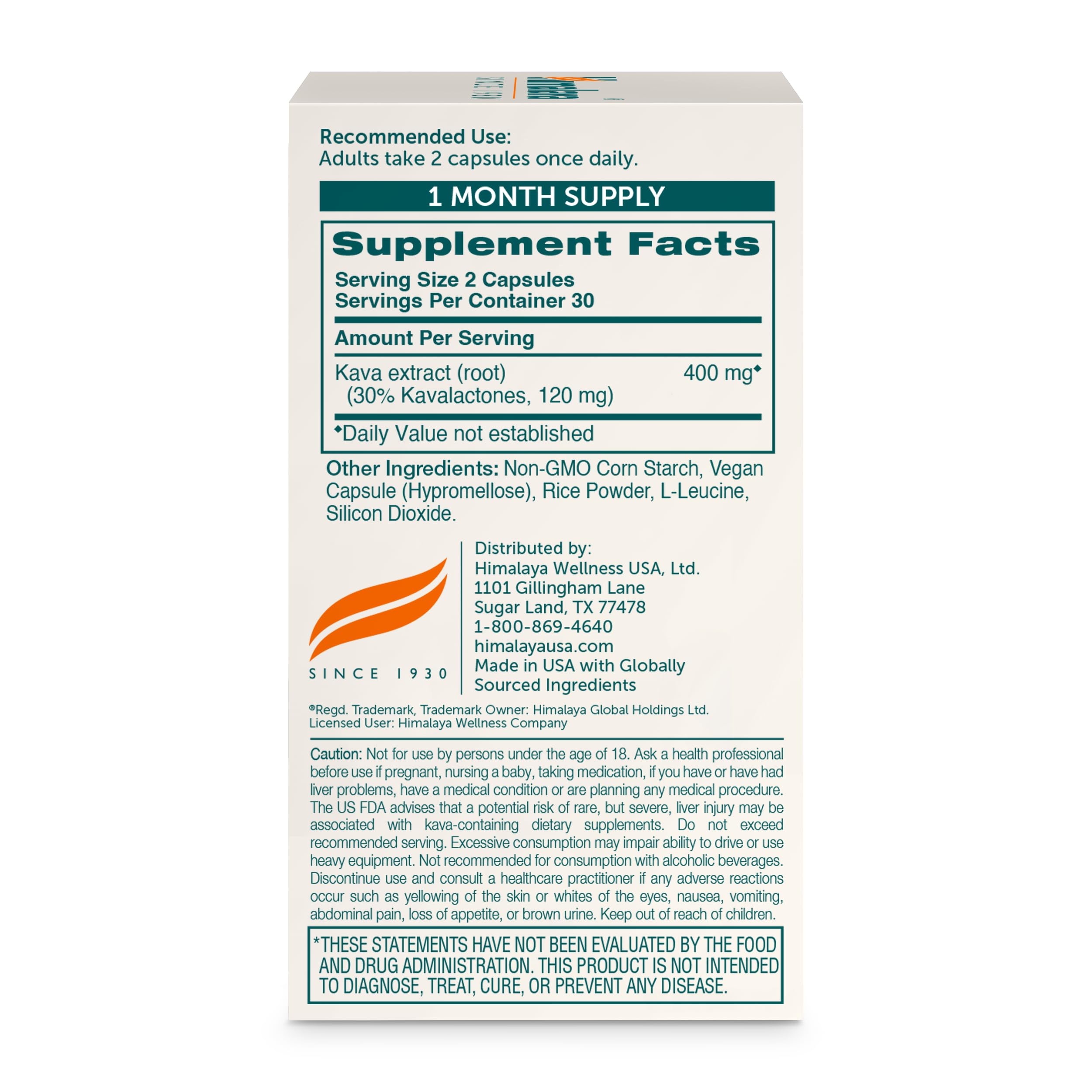 KAVA ROOT POTENCY: Experience the calming benefits of Kava Kava with Himalaya Kava capsules. Each 2-capsule serving delivers 400 mg of Non-GMO Kava root extract, providing 30% kavalactones (120 mg) to promote relaxation and a sense of calm in your daily routine.*