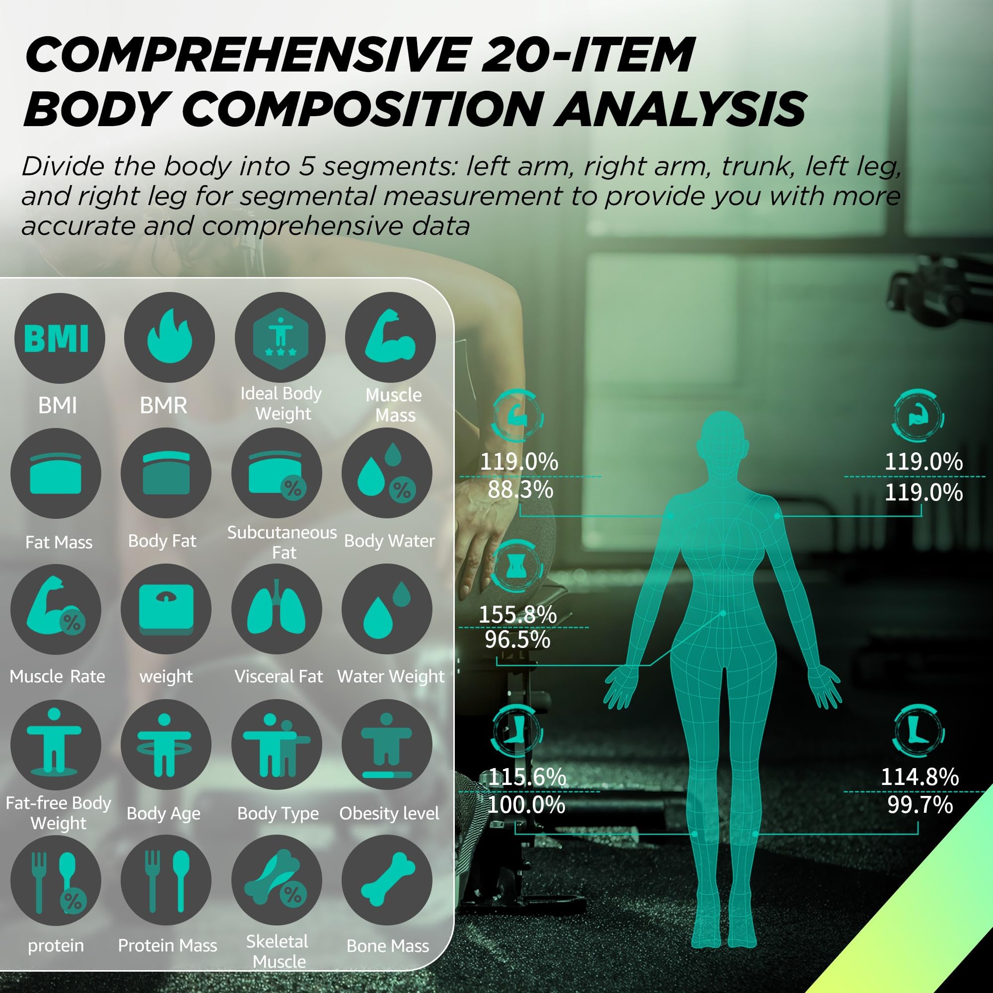 More Accurate Data: This eight-electrode scale for body weight acquires and analyzes real body composition data by directly measuring your limbs and torso, which is more accurate than traditional body weight scale.