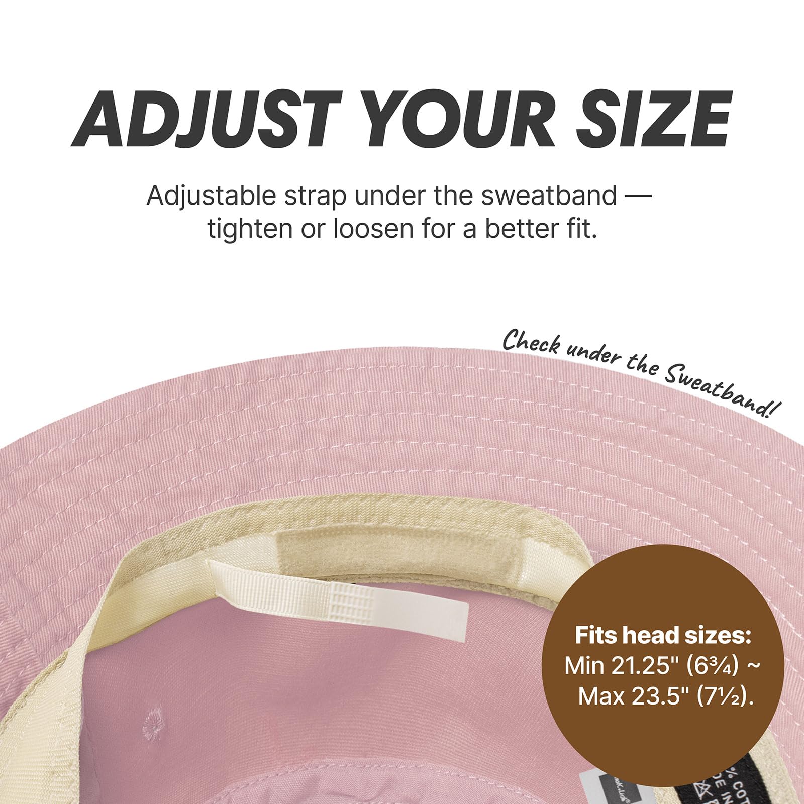 [ADJUSTABLE COMFORT] – Hidden inside the sweatband is a clever hook-and-loop strap that lets you tighten or loosen the fit. Whether you're heading to the beach or the city, enjoy a hat that moves with you and never feels off-size.