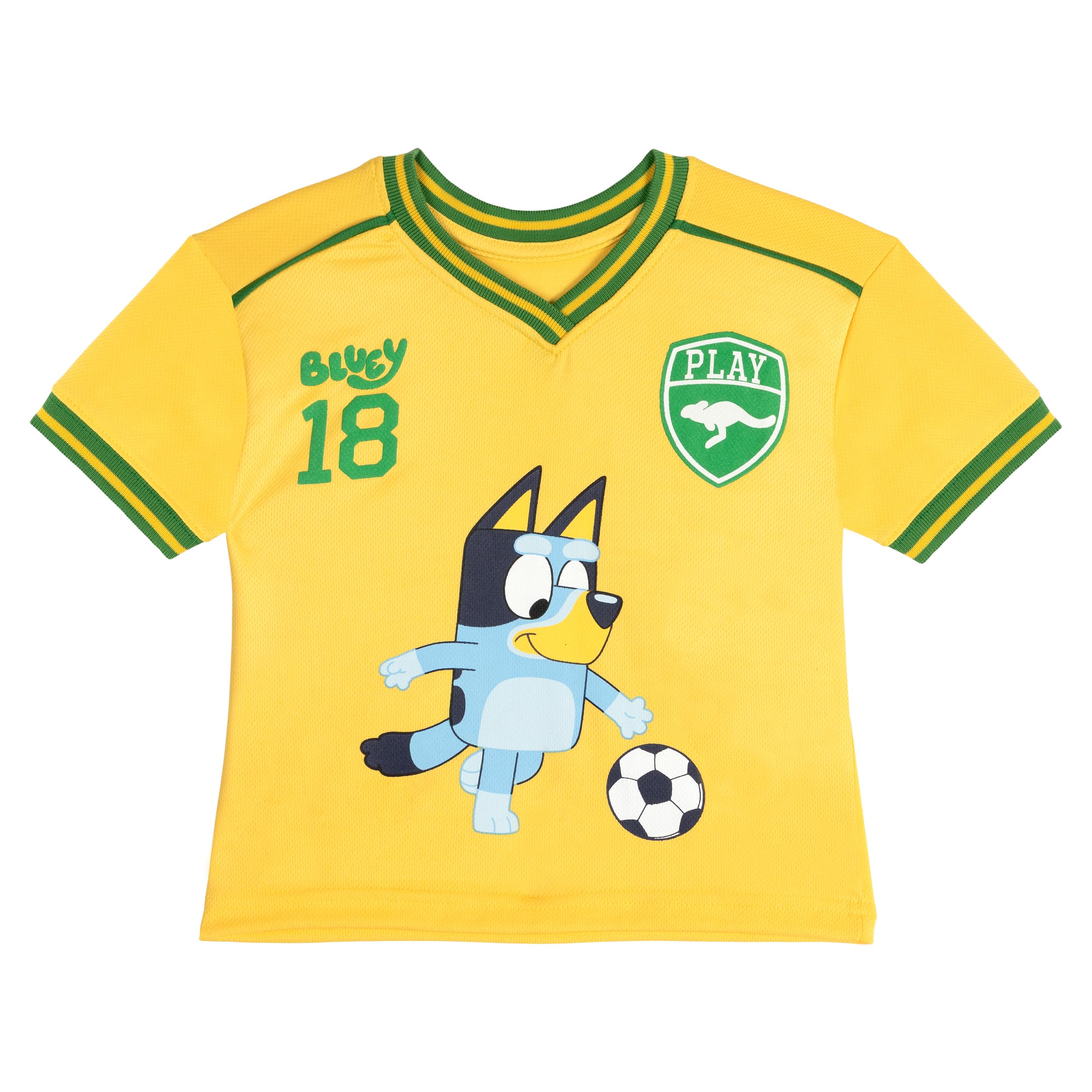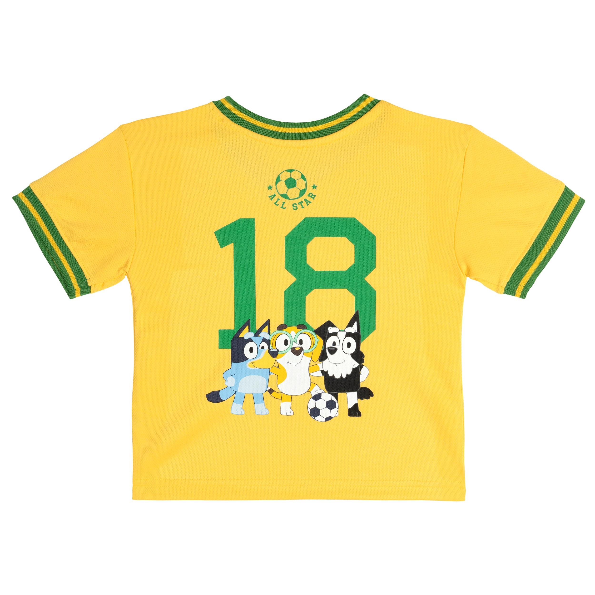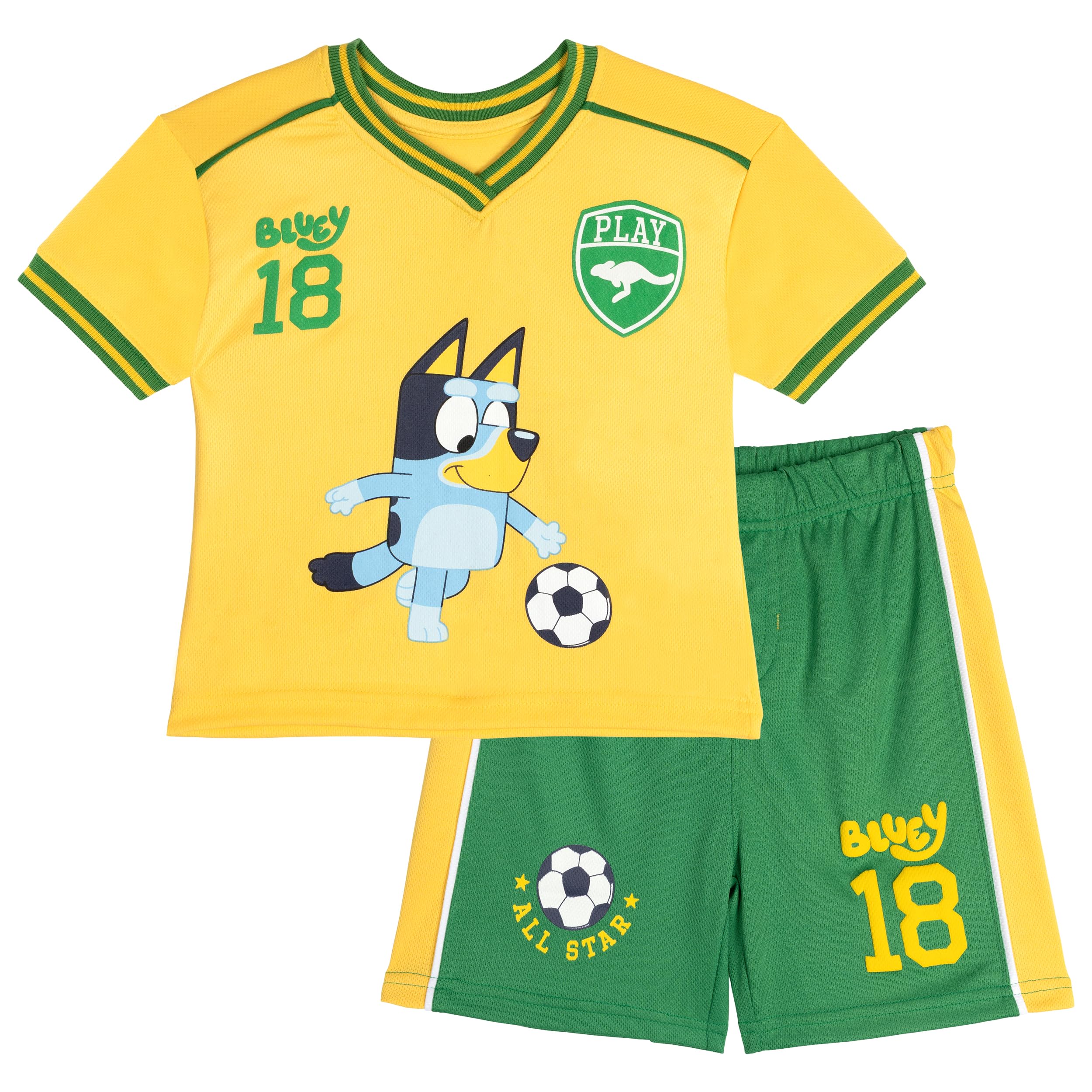 Description Get ready for a fun adventure in this cool Bluey outfit. This stylish short sleeve shirt and mesh shorts set features cute and vibrant Bluey artwork your kid will be excited to wear! Made of a soft and lightweight material that keeps your child comfortable, this fashionable Bluey tee and shorts set is the perfect outfit for all day play.