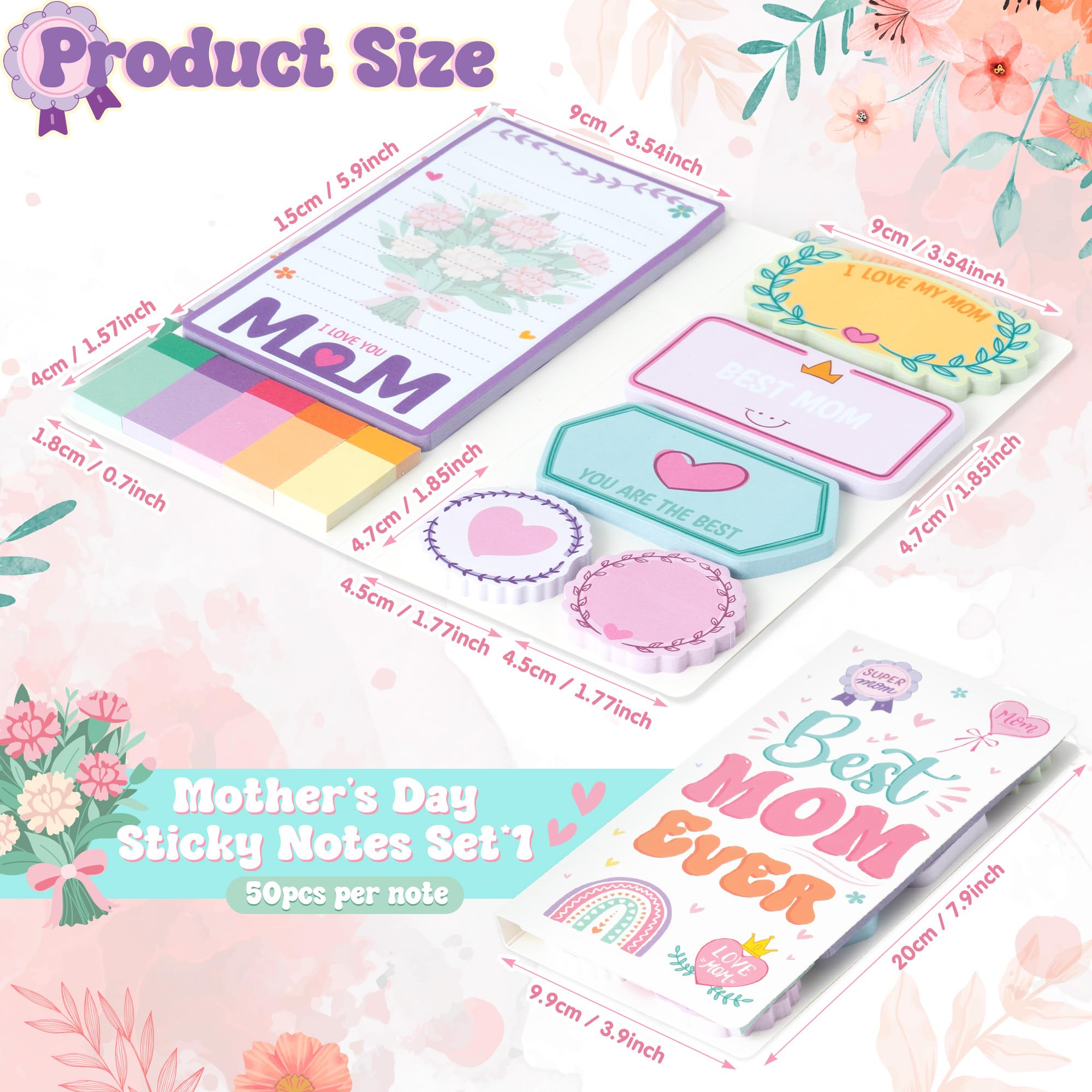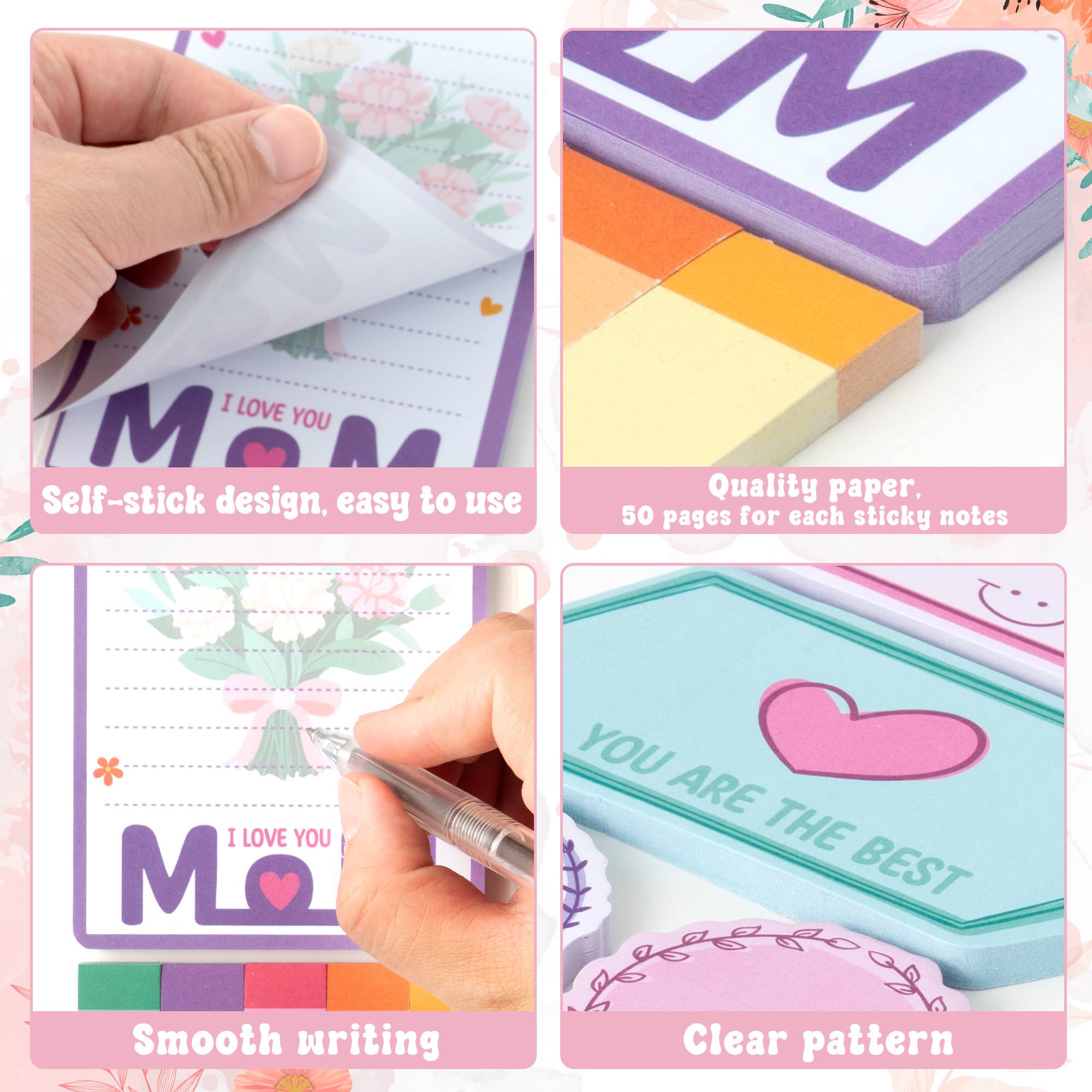 Package: You will receive 1 set of Mother's Day themed sticky notes with various styles and sizes. Each pad includes 50 sheets, 550 sheets total, perfect for daily use. The compact size is easy to carry and store in a purse, desk, or bag.