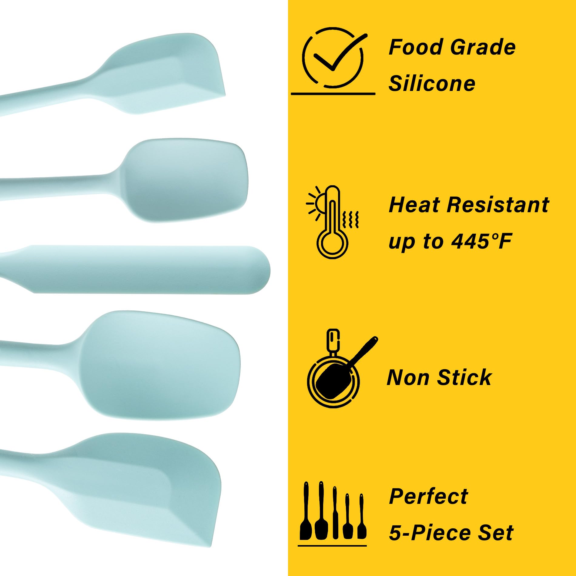 【Versatile Spatula 5-Piece 】:Silicone spatulas heat resistant:1 x large spoon spatula; 1 x large spatula; 1 x medium spatula/knife; 1 x small spatula; 1 x small spoon spatula.