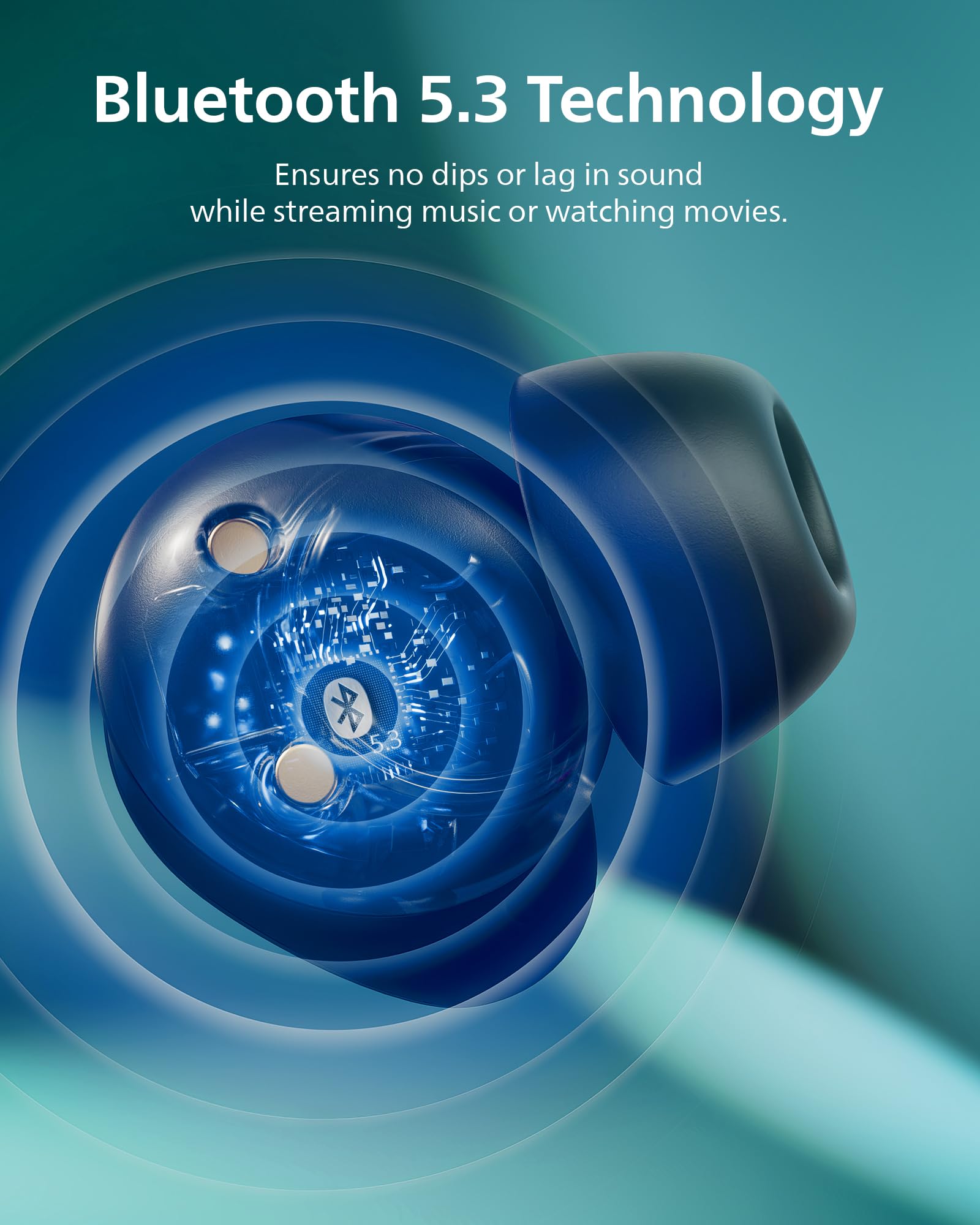 BLUETOOTH 5.3 CONNECTION: These earbuds use the latest Bluetooth 5.3 for a stable connection and superior sound quality. Enjoy uninterrupted streaming and clear calls in busy environments, with virtually no lag while watching movies or gaming.