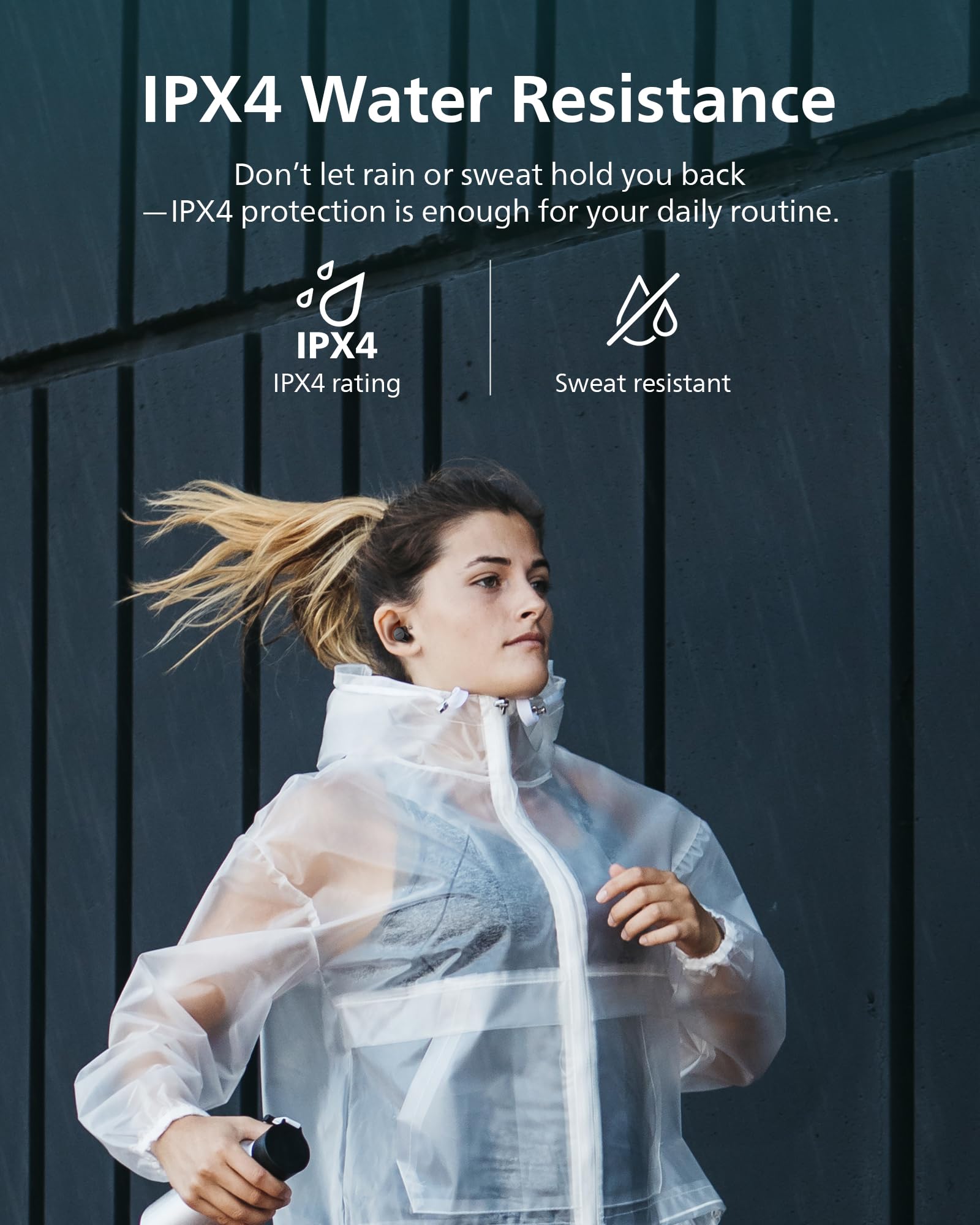 EASY CONTROL: Touch controls on the earbuds simplify your experience. Activate dynamic bass boost, control playback, or answer calls effortlessly. With an IPX4 rating, these earbuds are water-resistant, so rain or sweat won't hinder your workout.