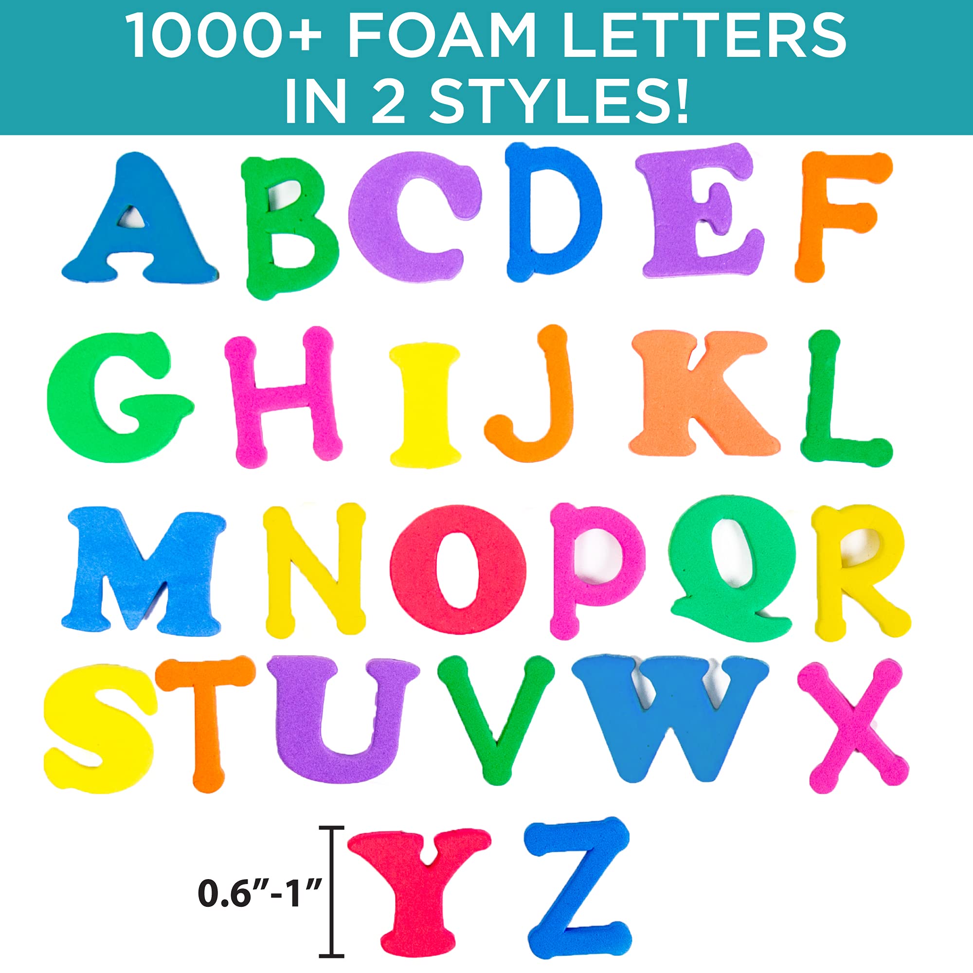 PACK INCLUDES: 1000+ Adhesive Foam Letters, A-Z, 7 Colors, 2 Fonts