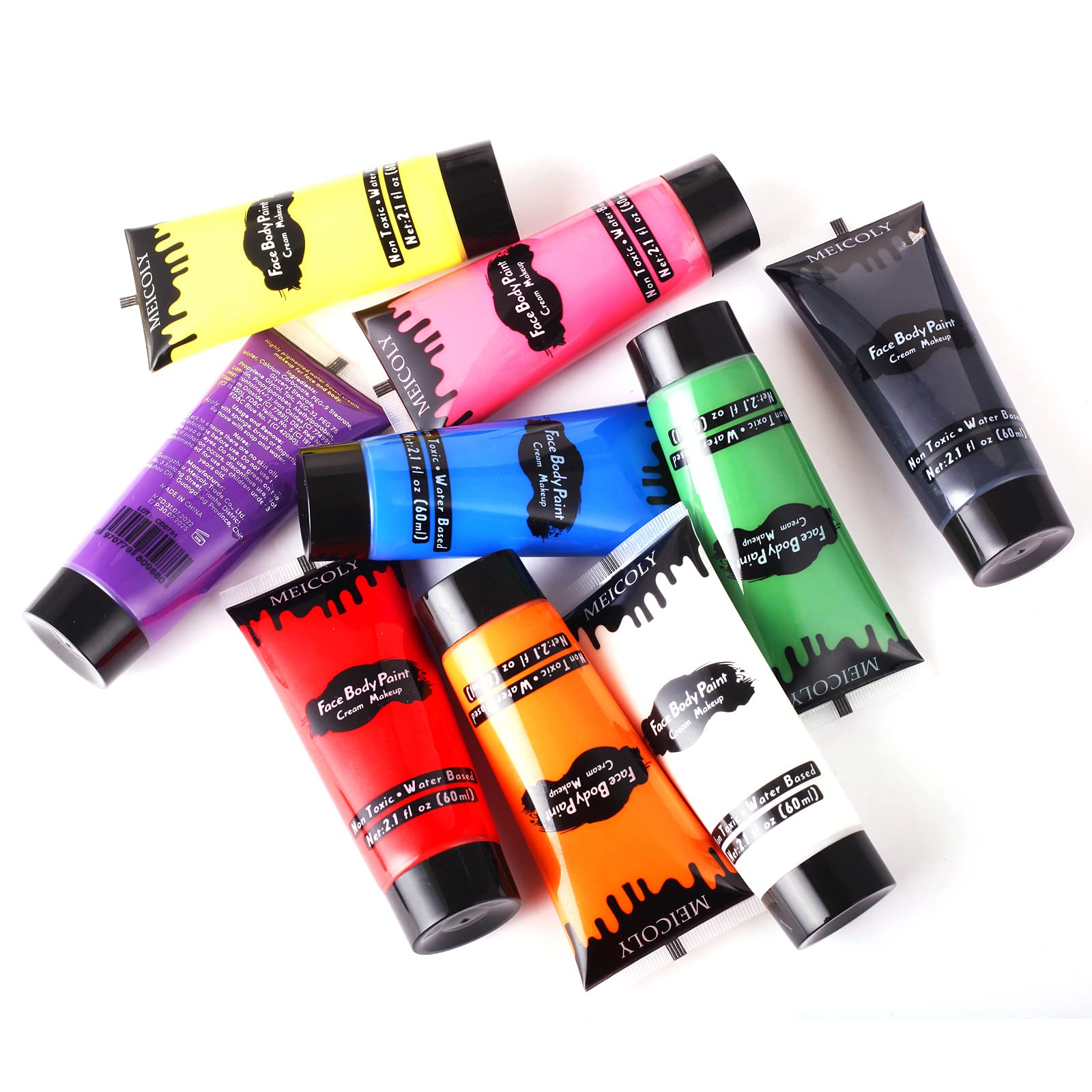 ✔Suit for Many Occasion--- MEICOLY face body paint can be used for face and body. Fit for Halloween Costume theme,fancy ball, parties, club,photoshoot,superhero designs,day of the dead makeup or other more SFX cosplay makeup.It's also great used as pink out accessories for spirit week.