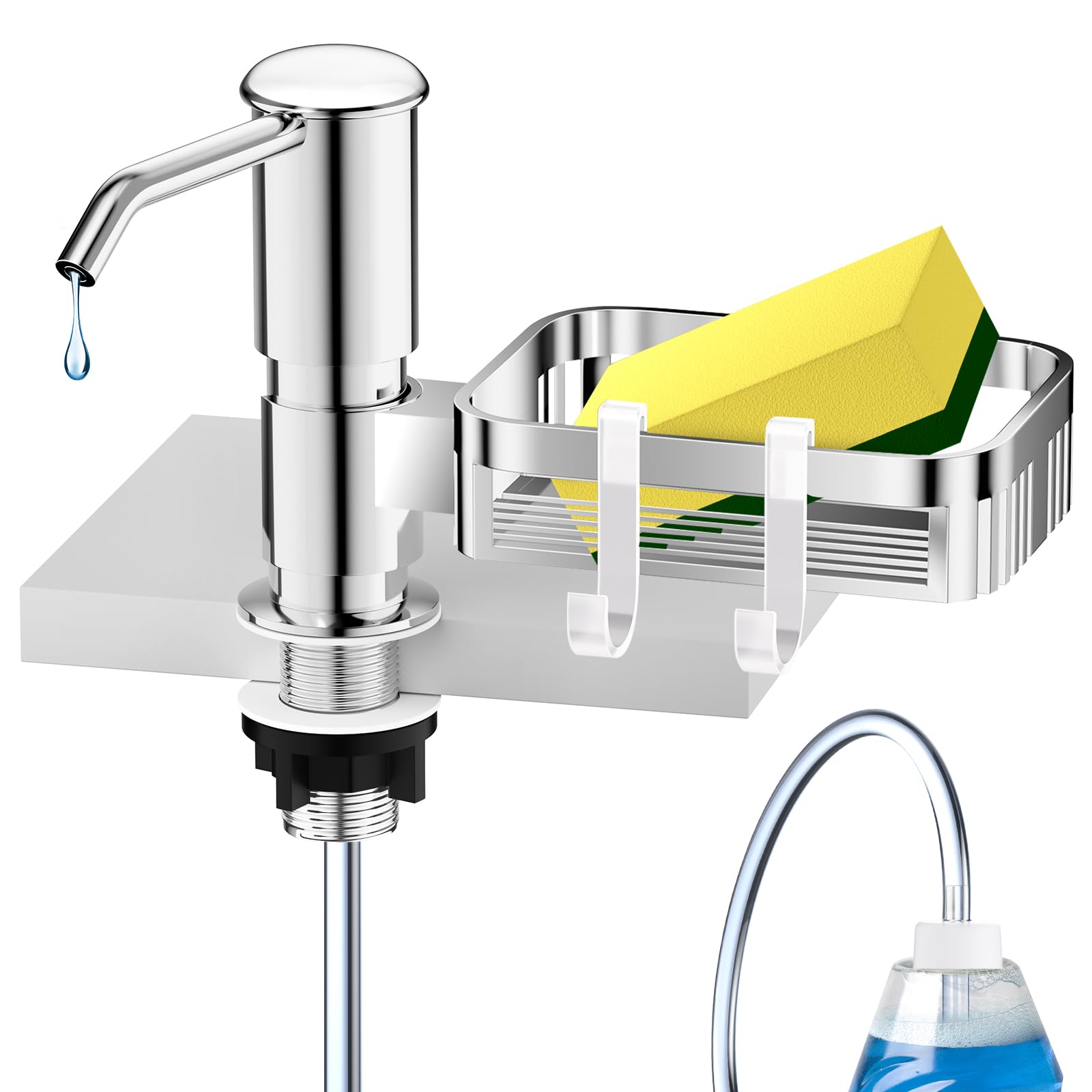 KHQF Kitchen Sink Faucet with Soap Dispenser,Commercial Single Handle Kitchen Faucets with Deck Plate (Brush Gold)