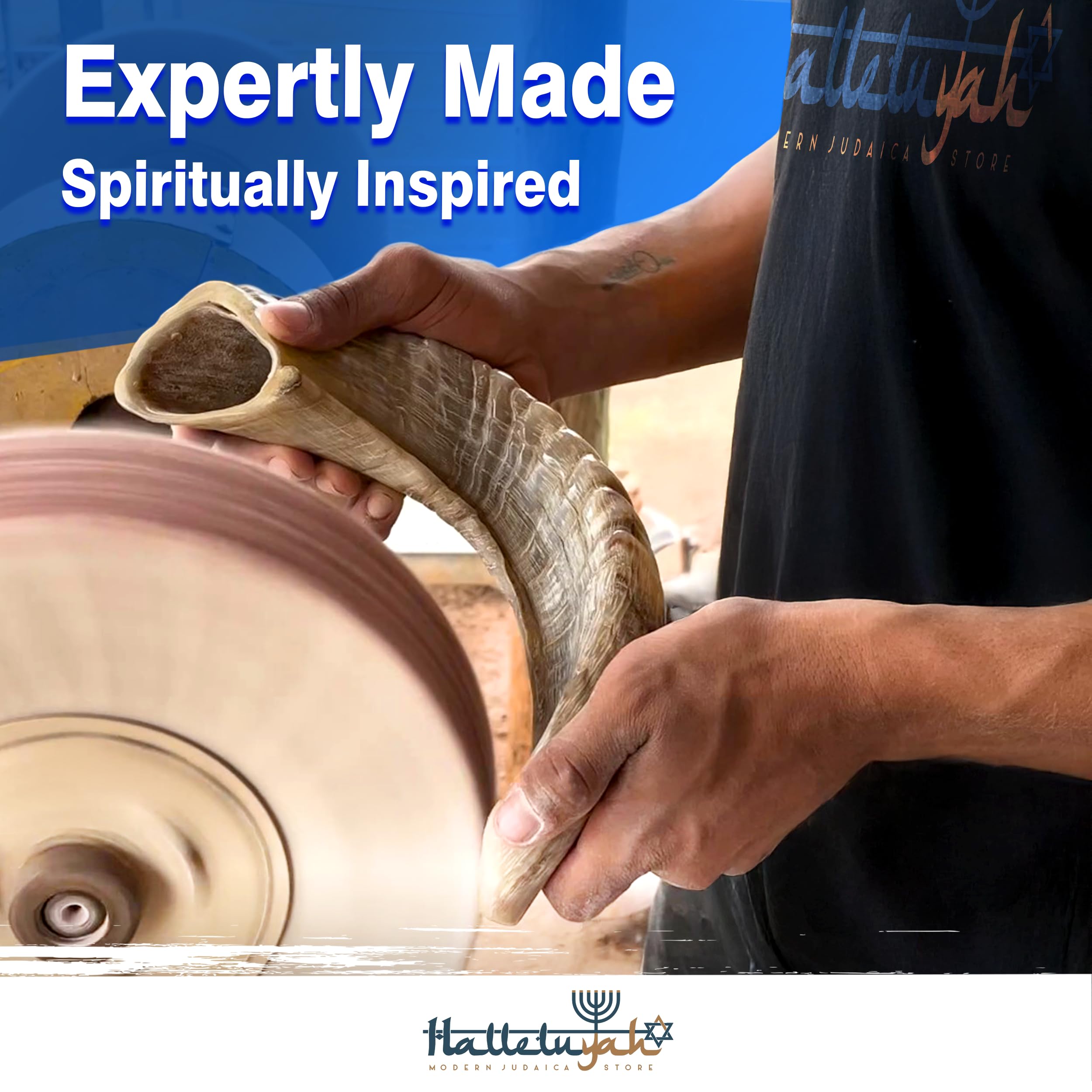 Crafted by the Hands of Tradition: HalleluYAH shofars are handmade in Israel, combining ancient craftsmanship with a commitment to authenticity. Each ram horn is shaped, polished, and perfected by skilled artisans, honoring a sacred tradition passed down through generations.