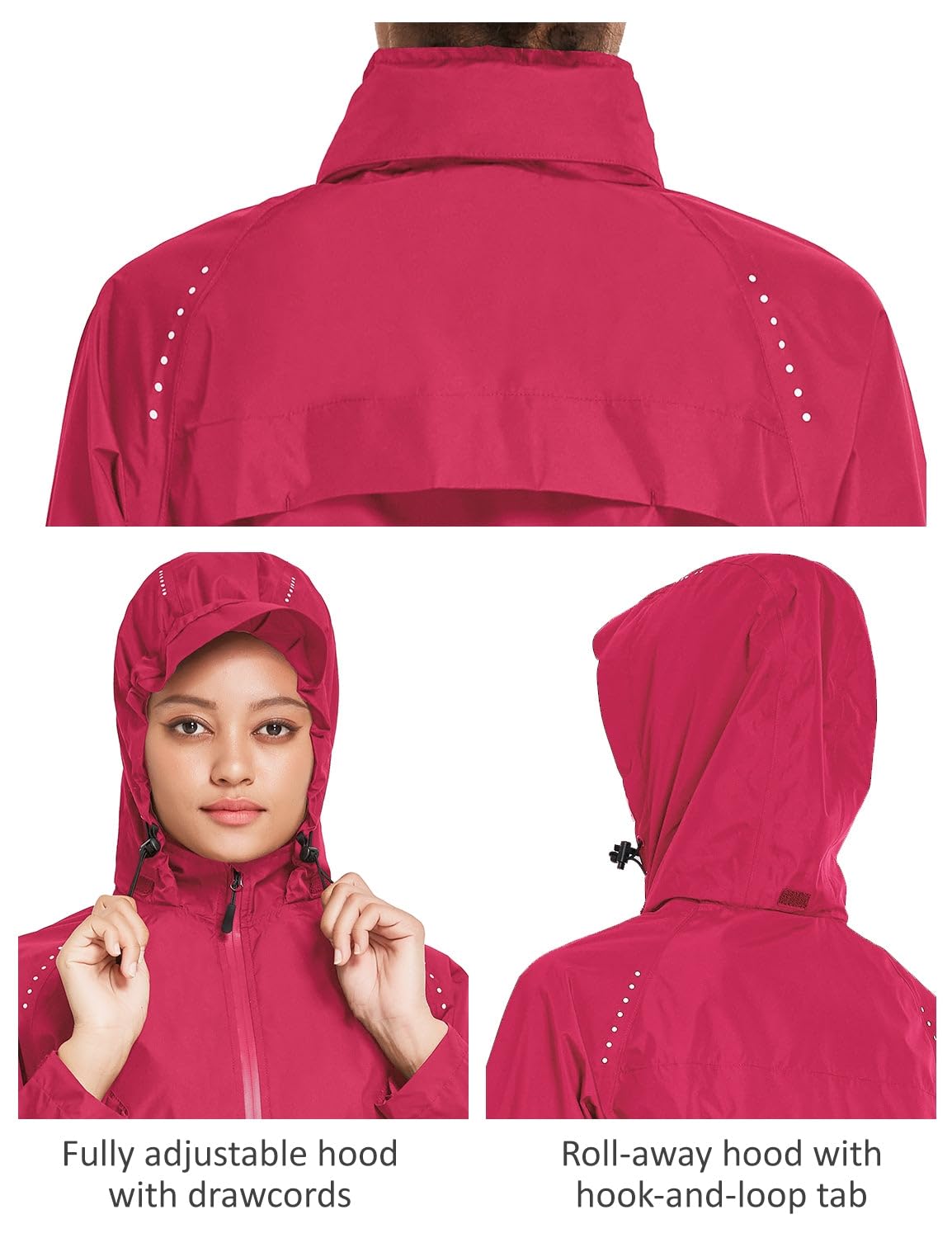 Lightweight & Packable: These running rain jackets for women are lightweight and can be packed into a small self-contained bundle in the back pocket conveniently.