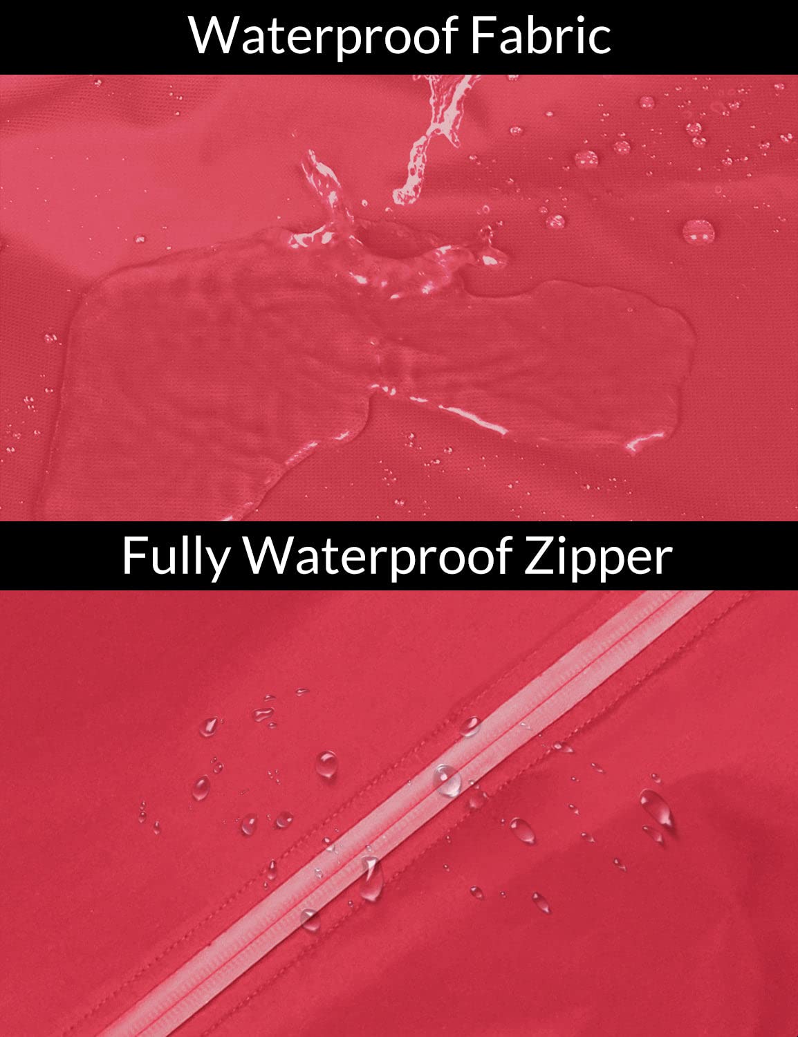 100% Waterproof: Water-repellent fully seam-sealed rain jackets can work under over 5000mm pressure head, while also being windbreaker. (Breathability Rating: 3000g/m2/24hr)