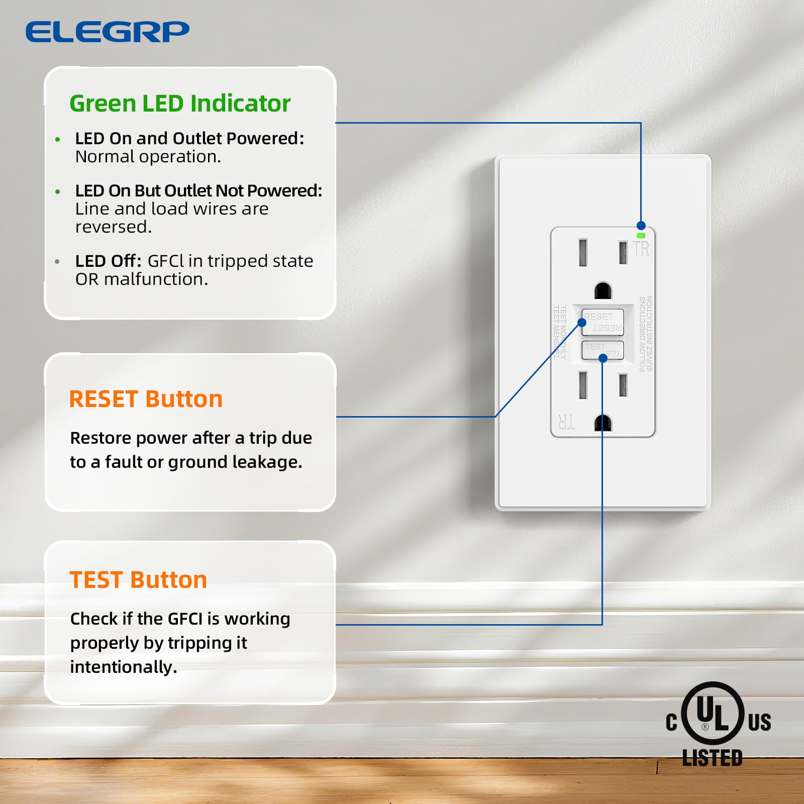 ✅【UL Certified & 3-Year Product Support】ELEGRP GFCI outlets rigorously tested to meet or exceed UL943 & UL498 standards for safety and reliability. Backed by 3 years of product support, ensuring long-term performance and customer satisfaction.