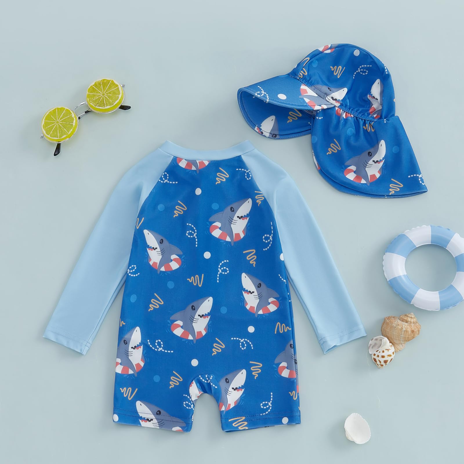 Design: Toddler bathing suit boy, infant long sleeve swimsuit boy, round neck, back/front zipper closure for easy on and off, newborn swimsuit boy, dinosaur/marine animal print, super cute and lovely, your little boy will stand out in the crowd