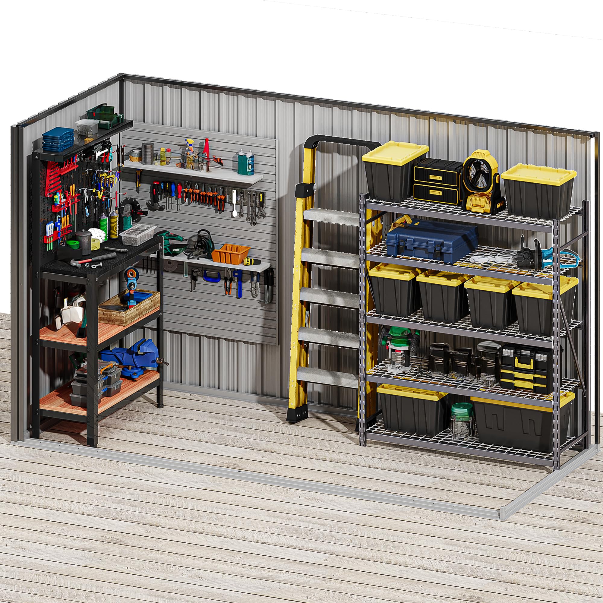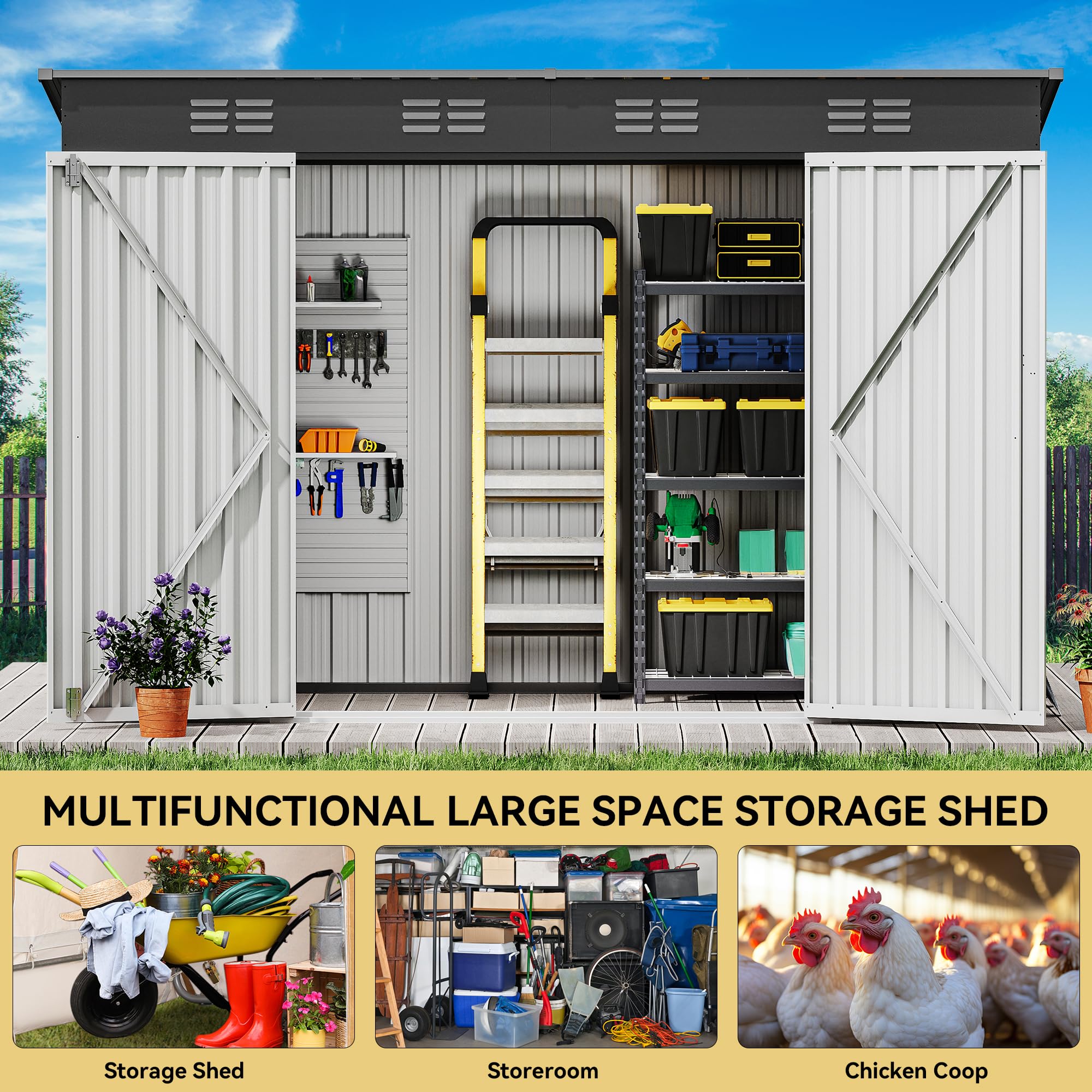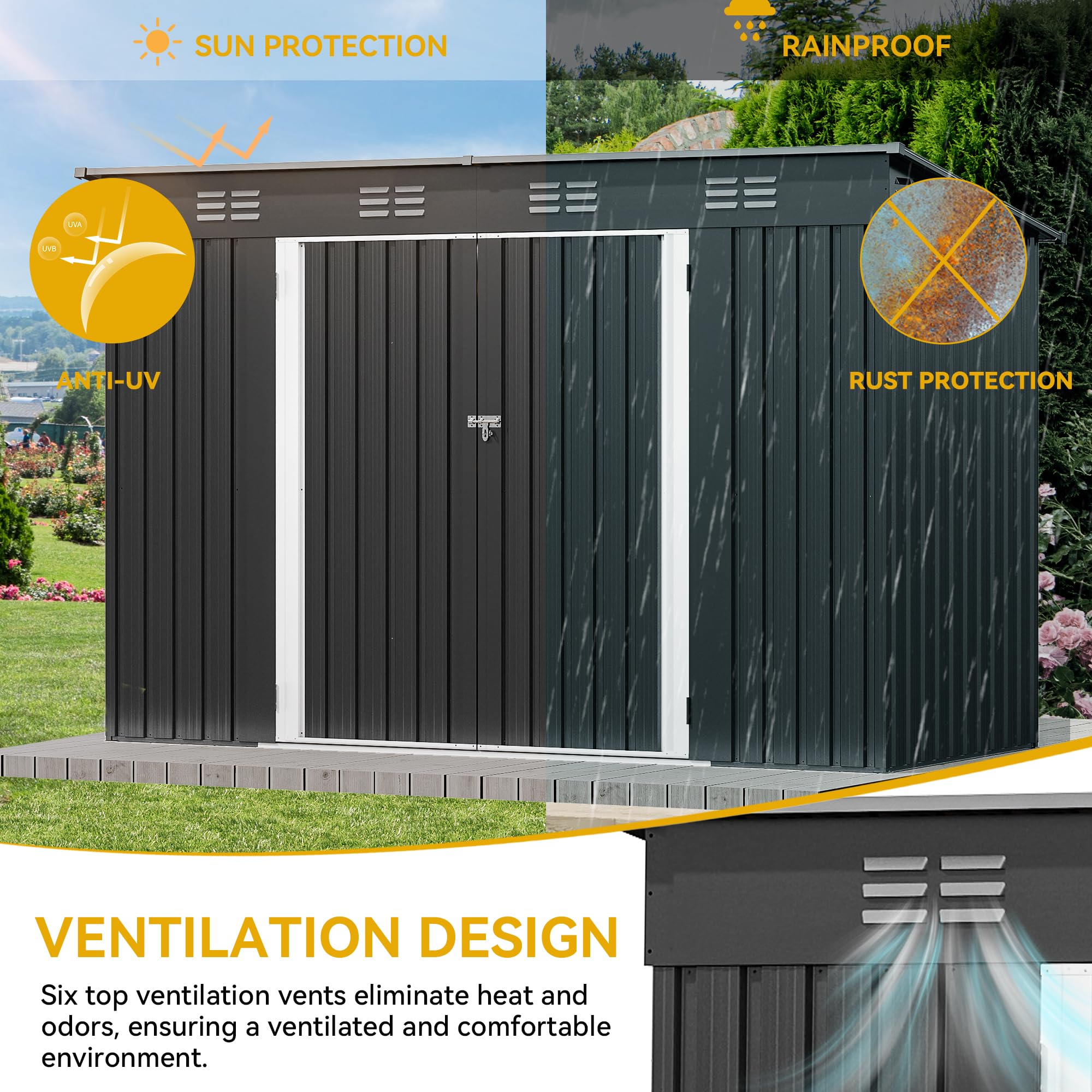 All-Weather Practicality: Thickened galvanized steel and a durable frame harmonize to offer this outdoor storage shed great rust protection; Overlapping wall panels work with tilted roof to prevent rainwater from gathering or seeping in for year-round use