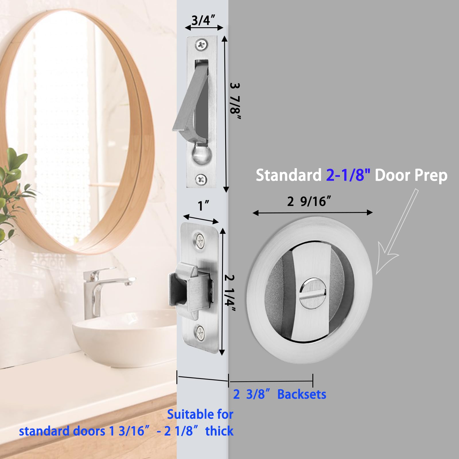 Large Locking Lever: Large locking lever make this lock user-friendly and accessible to people of all ages and abilities.This pocket door privacy lock and pull has a wide, easy grip design and is for left or right handed doors.