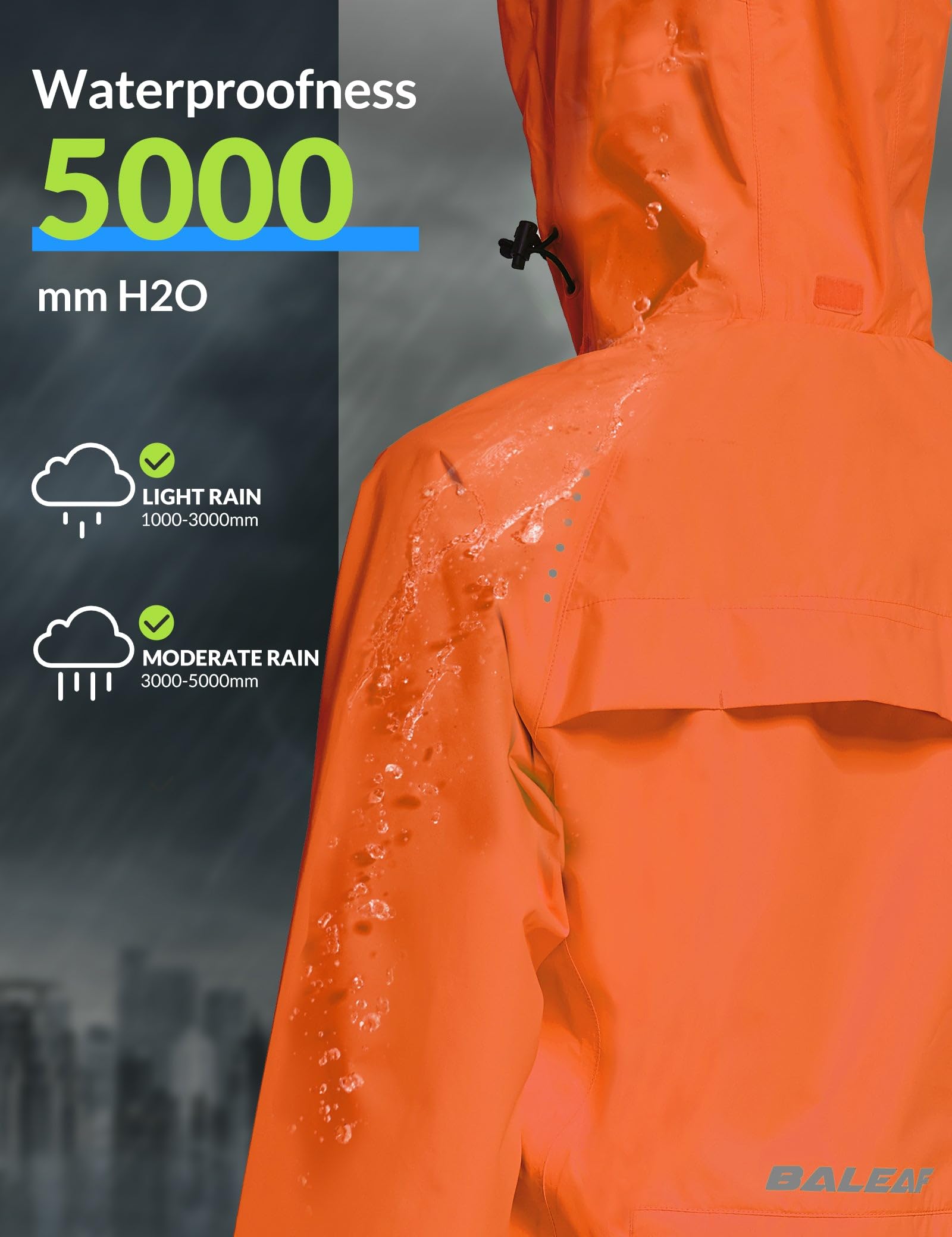 100% Waterproof: Water-repellent fully seam-sealed rain jackets can work under over 5000mm pressure head, while also being windbreaker. (Breathability Rating: 3000g/m2/24hr)