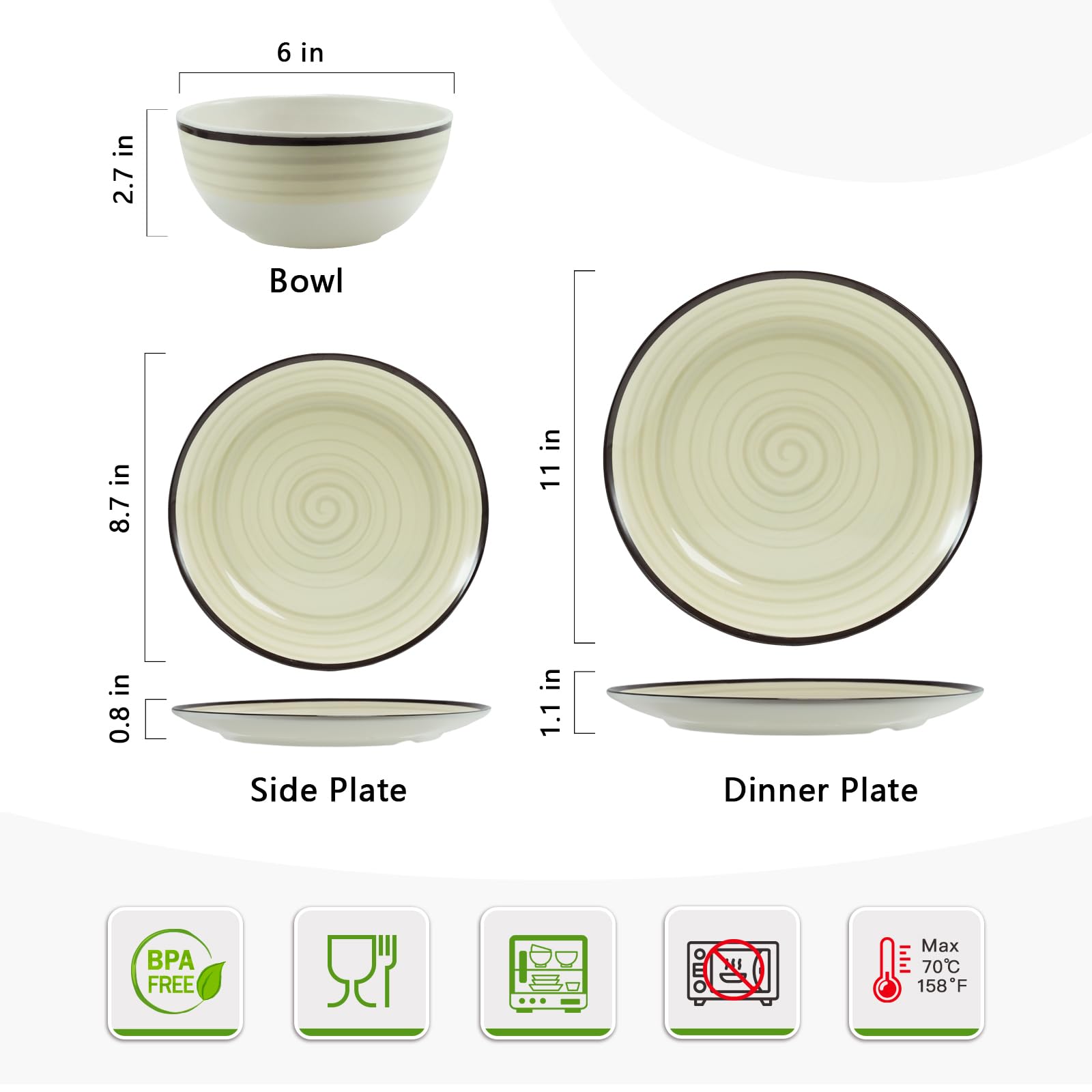 Wallet Friendly: who says that quality dishware sets have to be expensive? The melamine dinnerware two-piece dinnerware Service for 4 offers high-end dishes at friendly pricing. Now you can enjoy the top without paying top dollar.