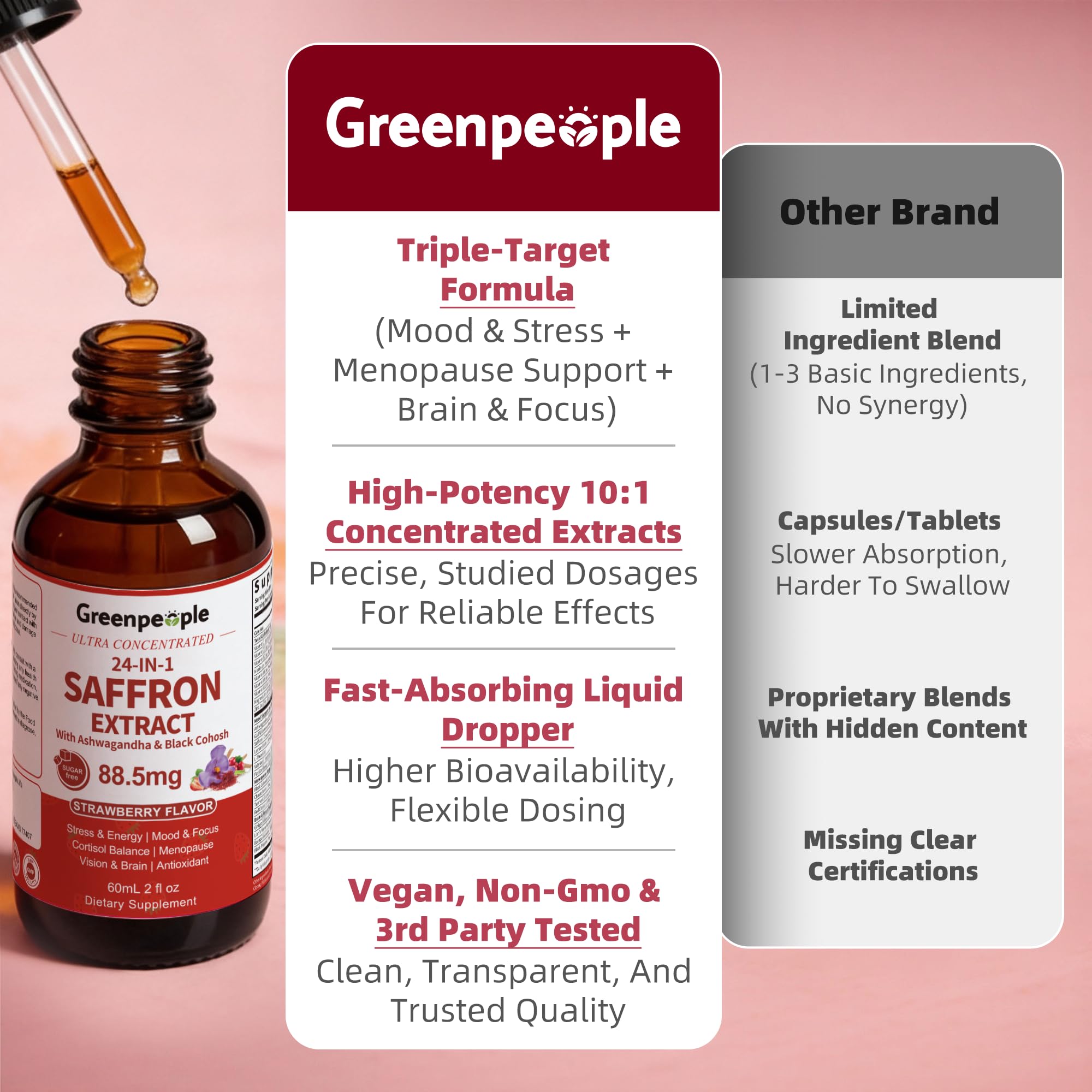 Clean Formula For Modern Lifestyles:Our Strawberry-Flavored Saffron Drops Are Sugar-Free, Vegan, And Gluten-Free. Each Bottle Provides 30 Convenient Servings (60ml Total), Making It An Ideal, Comprehensive Daily Wellness Choice For High-Pressure Professionals Or Women Navigating Life'S Transitions.