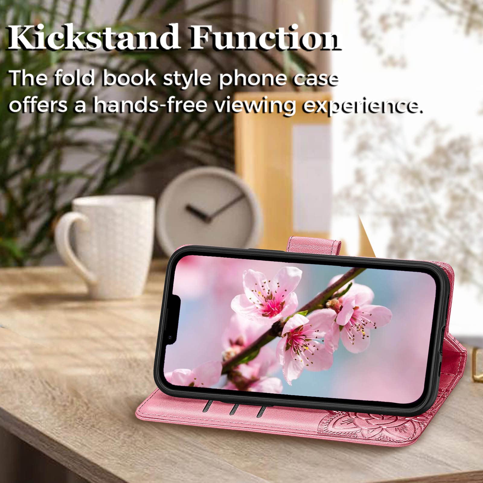 Kickstand Function: The luxury leather phone case for iPhone 13 has a stand function,A folding line on the back of case allows you to convert the wallet case into a kickstand. The fold book style phone case offers a hands-free viewing experience.