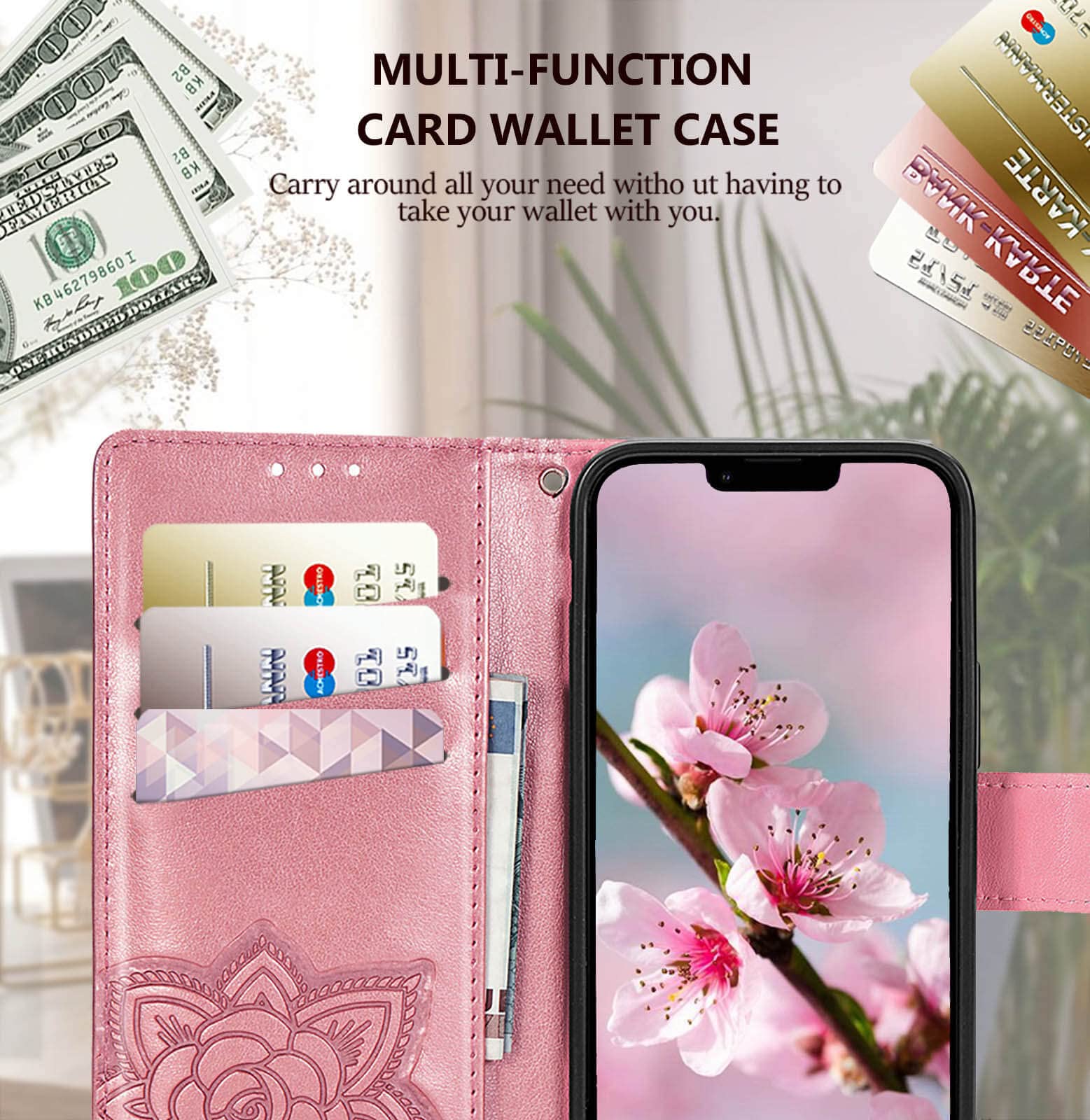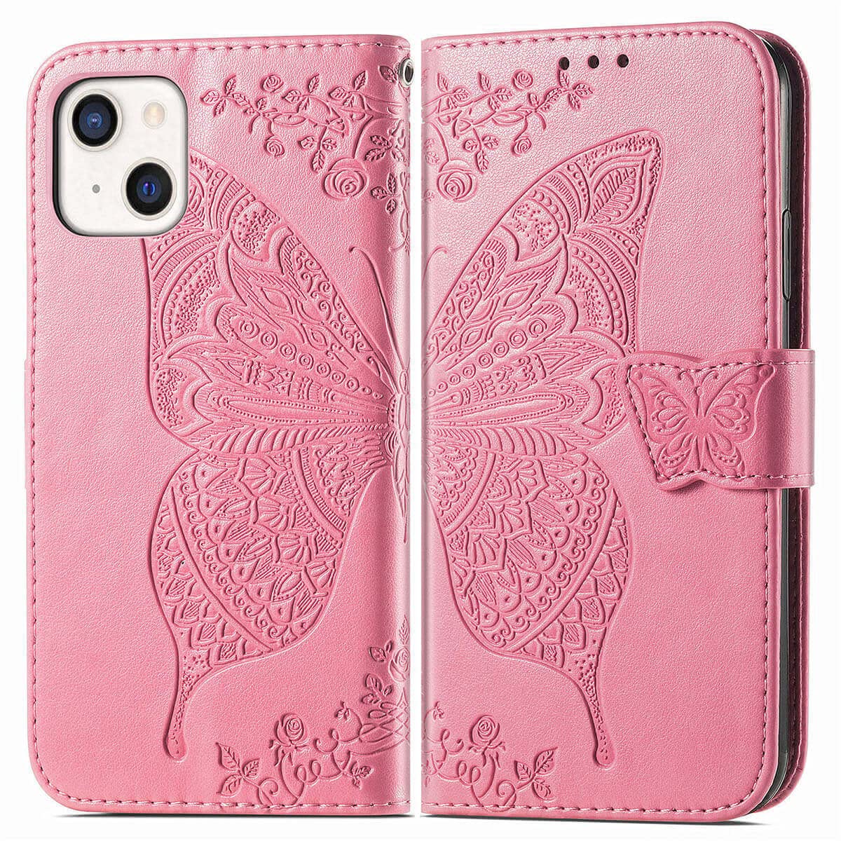 Exquisite Butterfly Pattern Design: For iPhone 13 wallet case for women with 3D emboss butterfly flowers pattern,premium leather with soft TPU interior material brings very comfortable touch feel.This folio case will bring you charm while offering protection and convenience.