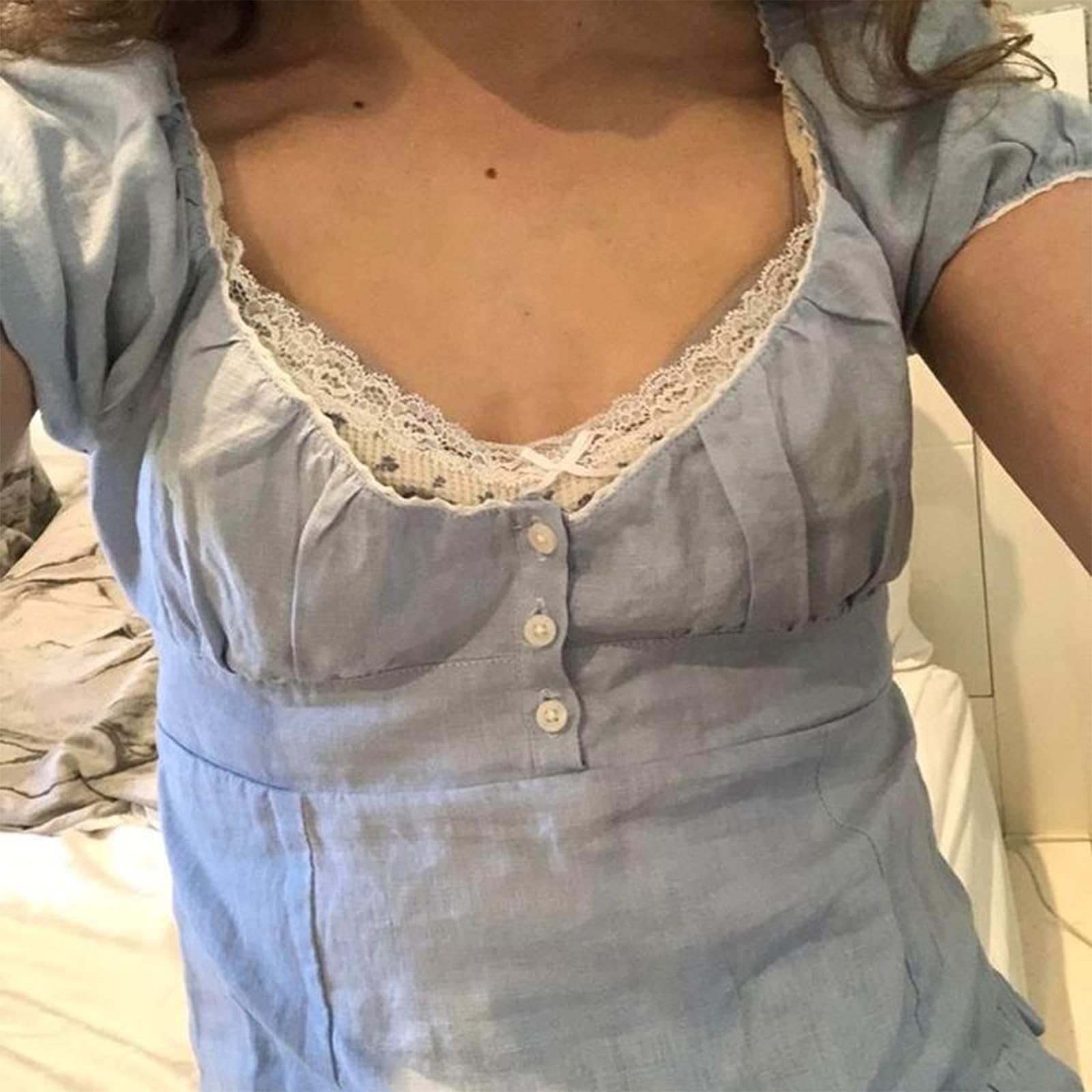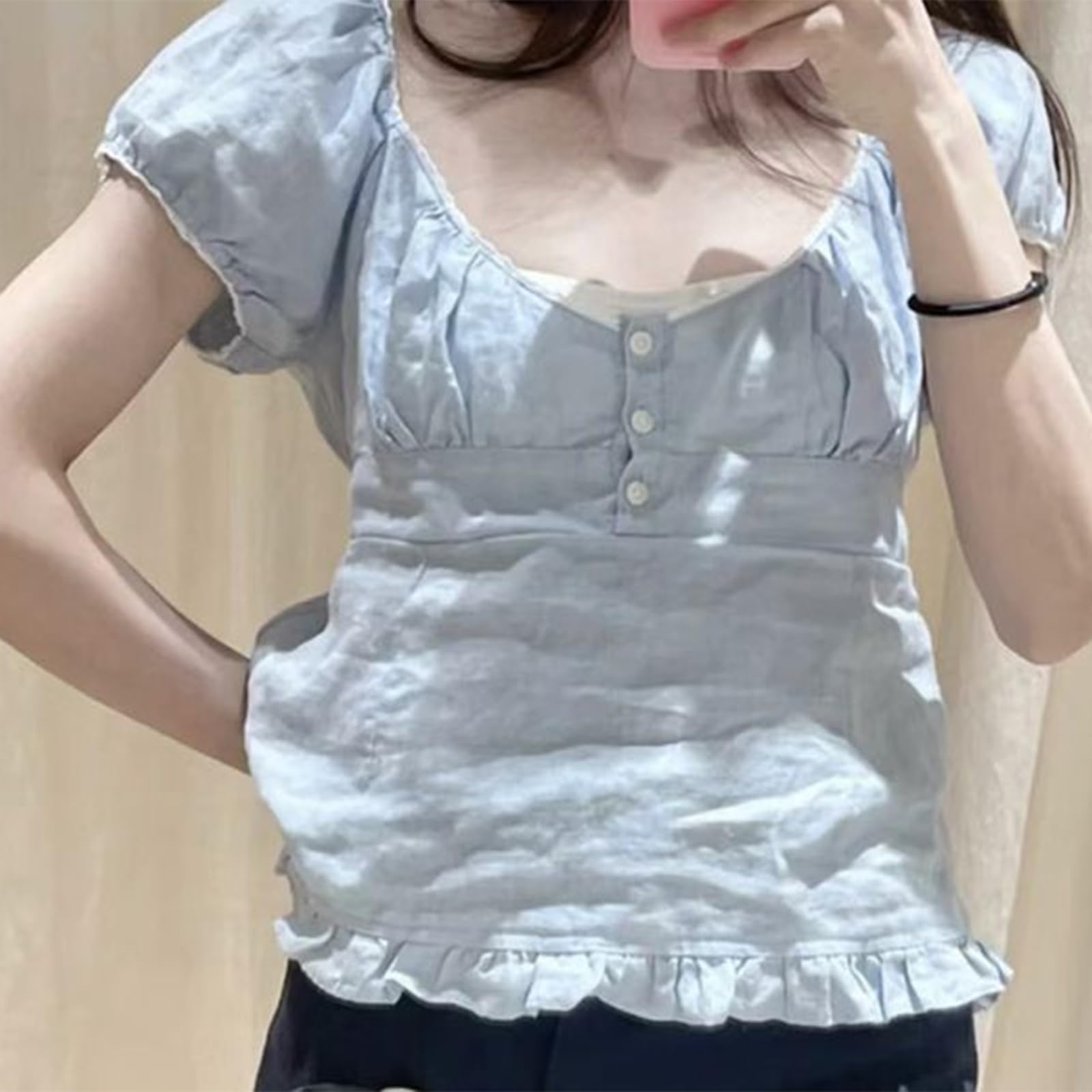 Design: Women vintage y2k short sleeve tee tops, 90s aesthetic t-shirt, short sleeve, lace patchwork, crew neck, slim fit, cropped length, fairy grunge t-shirt.