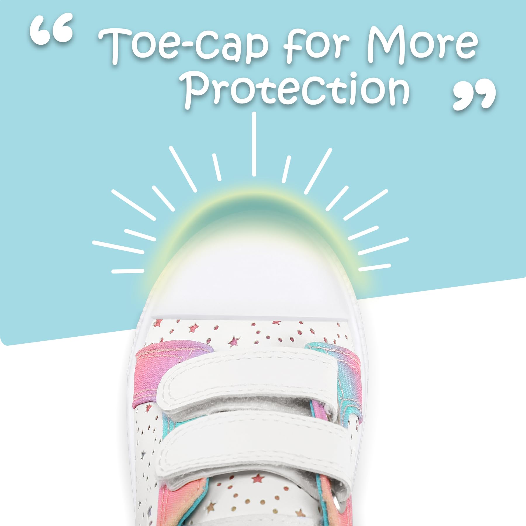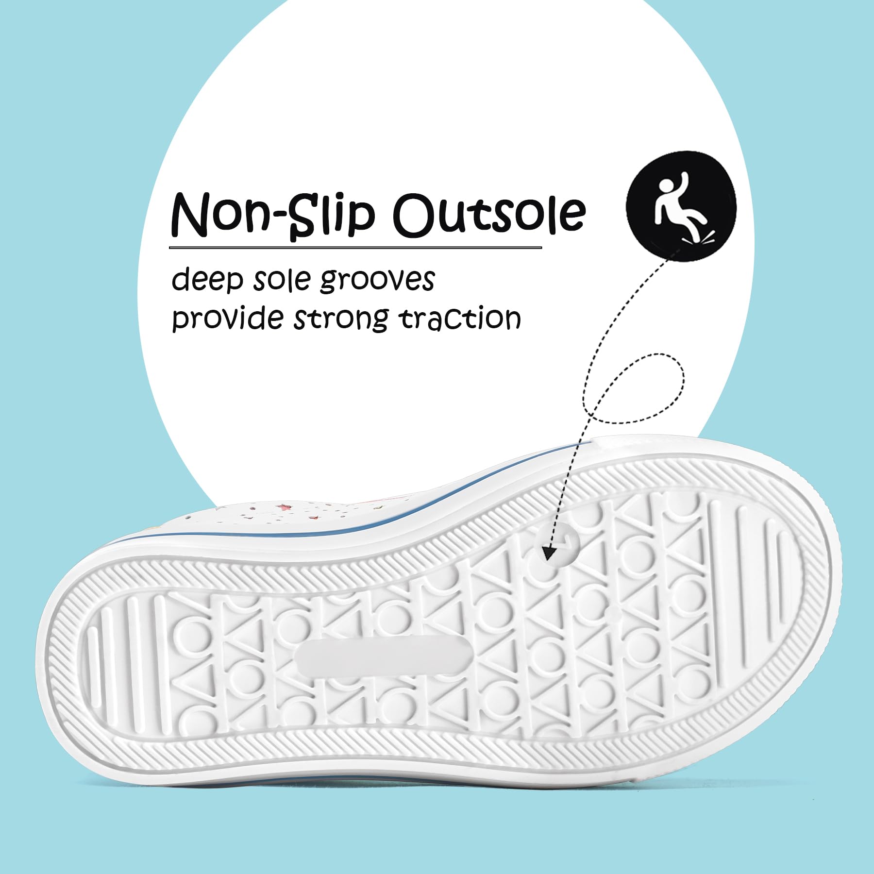 Safe and Breathable Material: The upper is crafted from breathable material, the latex insole and foam-filled collar offer a soft feel, while the anti-skid rubber sole ensures extra protection and safety for your child's precious feet.