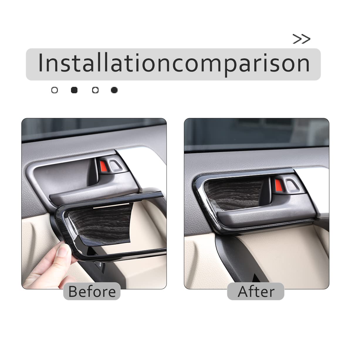 🚗【HIGH QUALITY】: The inner door handle bowl cover is made of premium ABS material. Black wood grain pattern surface with clear texture, colorfast, scratch-resistant and anti-corrosion, lightweight and durability, deal with edging , not hurting hands or car,would protect your inner door handle against outside harms.