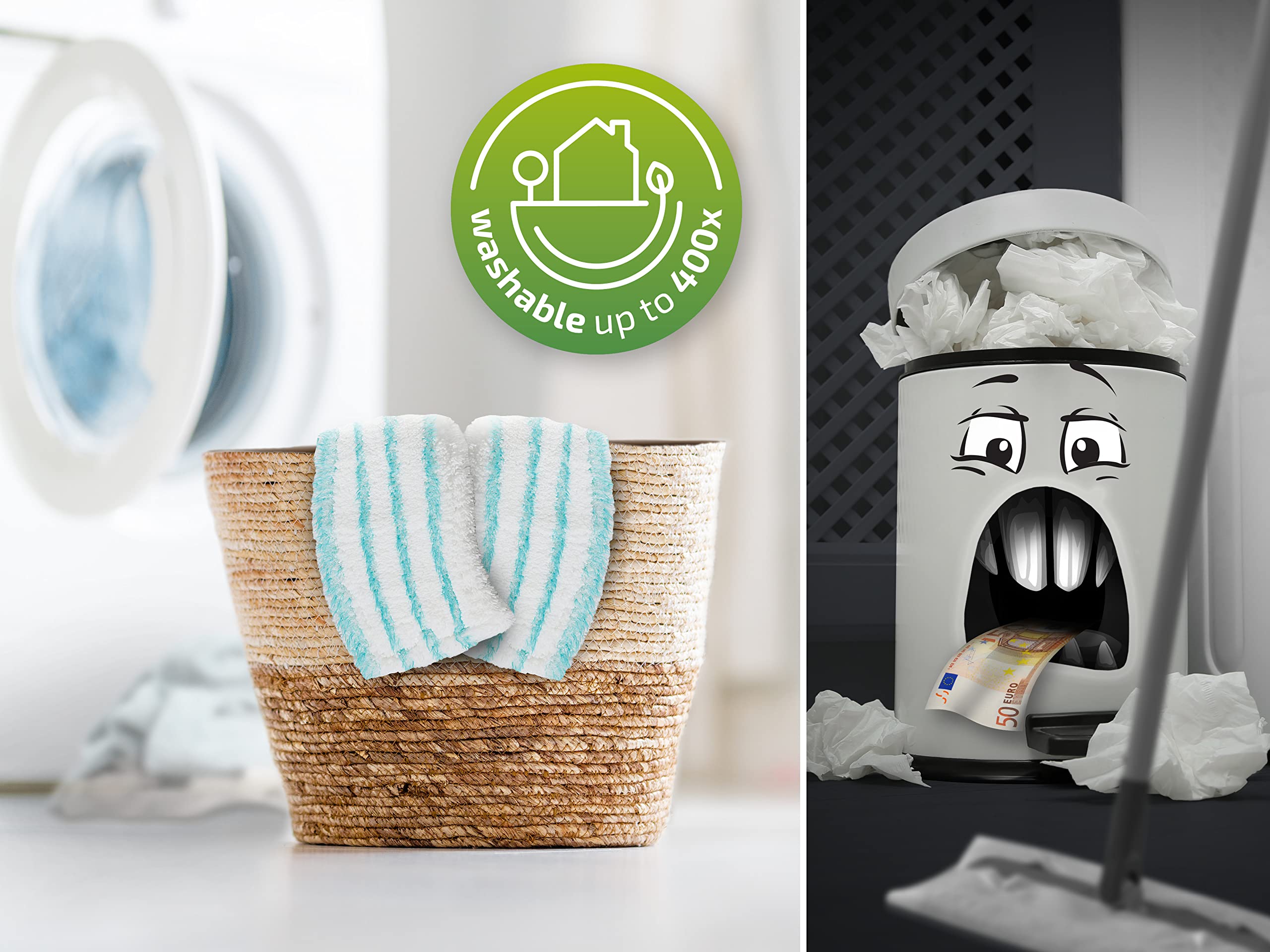 Washable and reusable - After use, the microfibre flat mop head can simply be detached and thrown in the washing machine meaning it can be used again and again