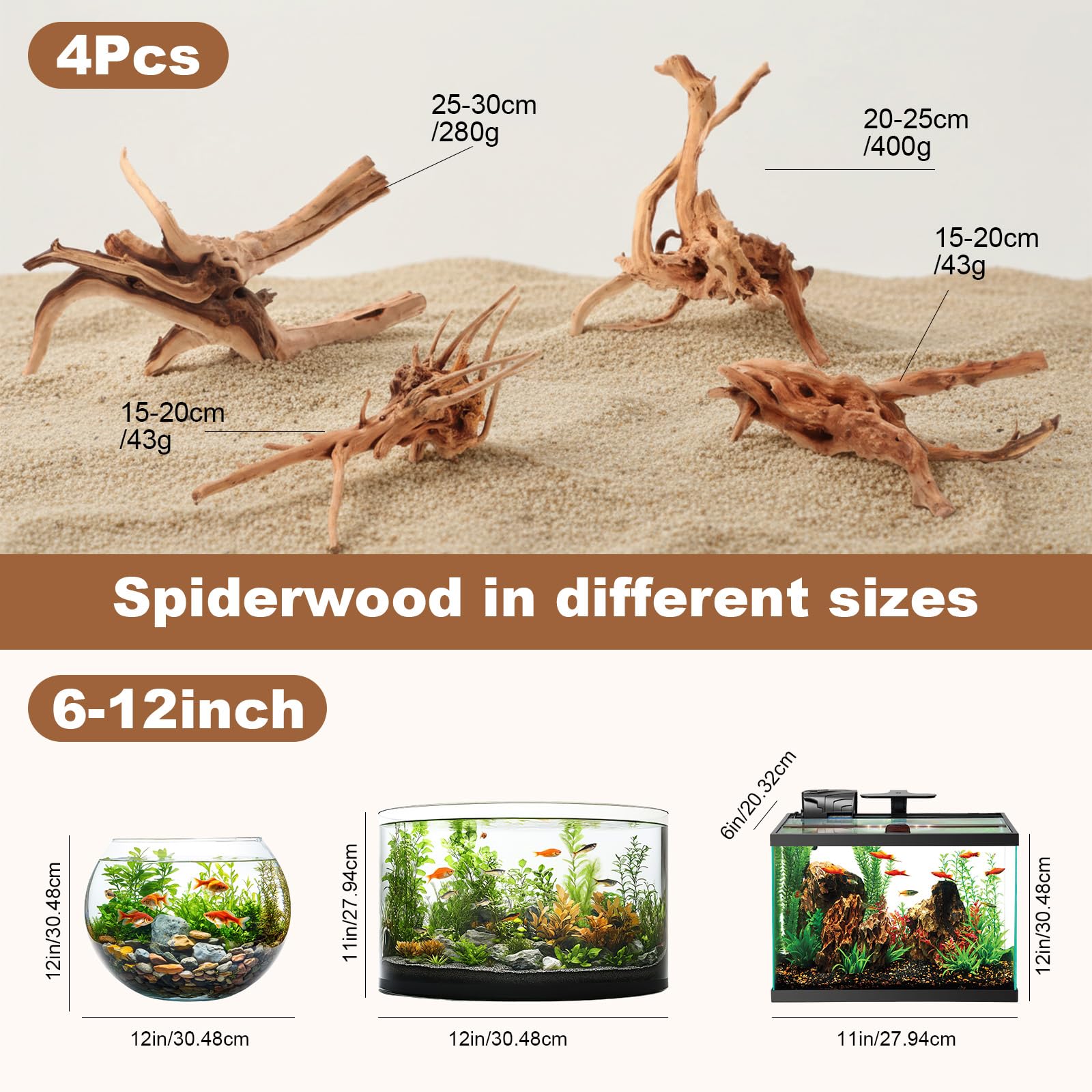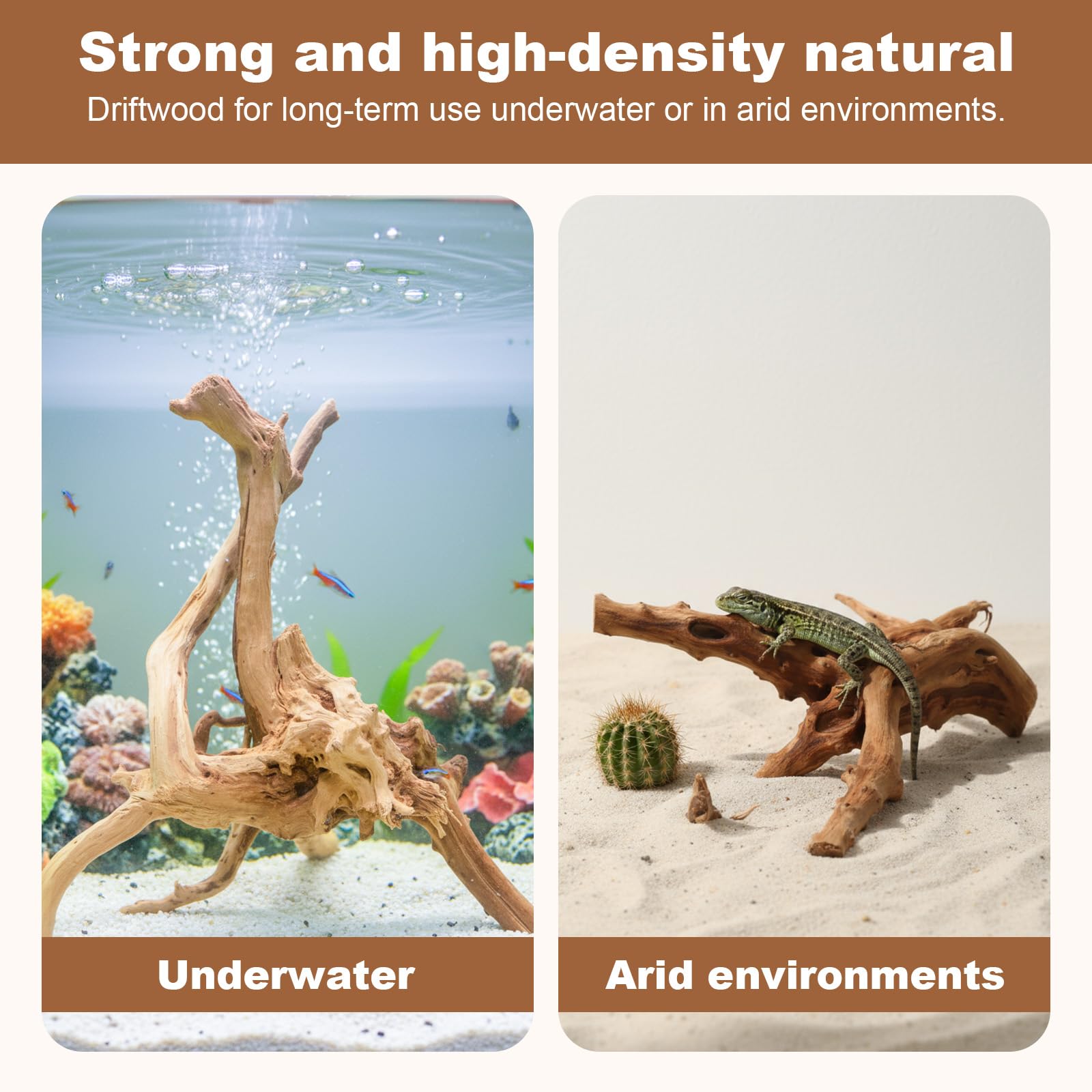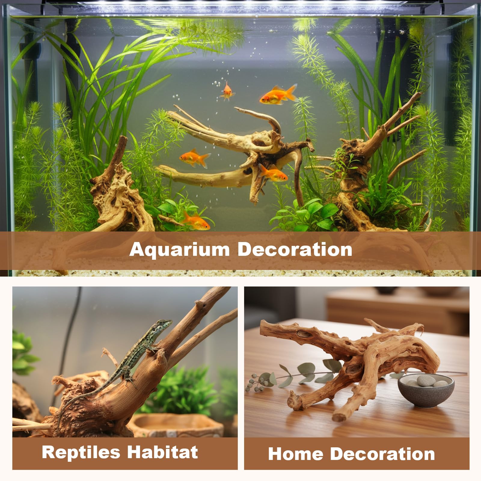 Natural Shape, Unique Beauty: Each piece of driftwood features a unique twisting branch shape, creating a realistic ecological environment and adding a touch of natural beauty to your aquarium or reptile tank