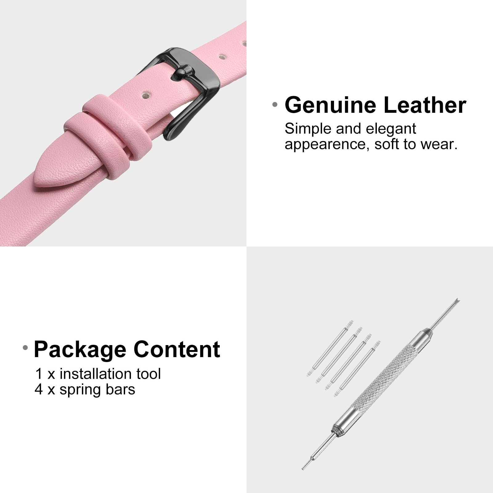 Description Material - The flat cowhide watch strap provides a more comfortable wearing experience. breathable, sweat-proof, and soft to wear. Feature - Universal size soft comfortable leather strap, smooth touch, simple and elegant, color your life. Application - The strap is suitable for men and women, the unique design fits most watches, give your watches a fresh new look. The watch straps are available in a variety of colors and sizes, you can choose the one that matches your fashion tastes. Notice - Please confirm the size before ordering, make sure the strap you choose matches the lug width of the watch case.