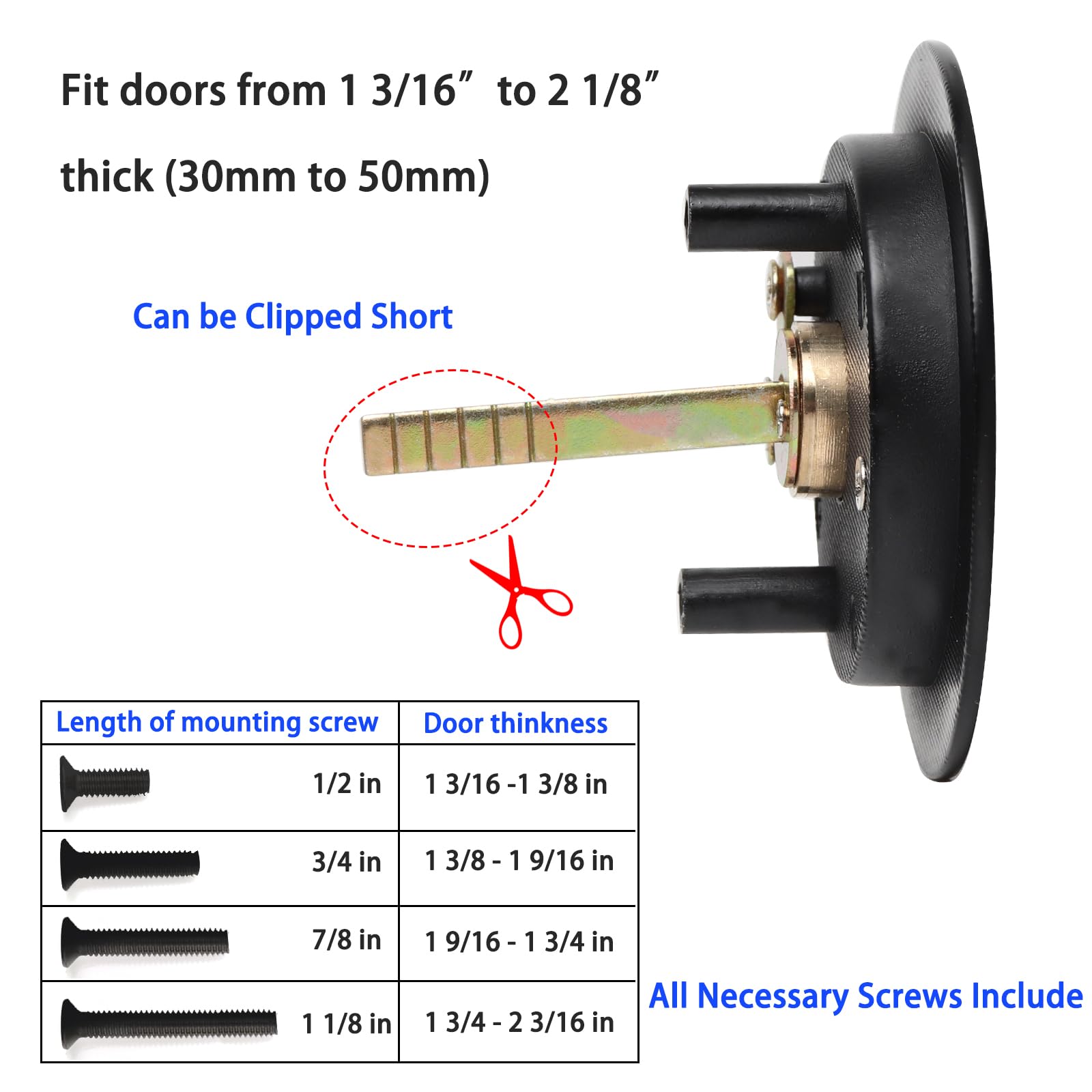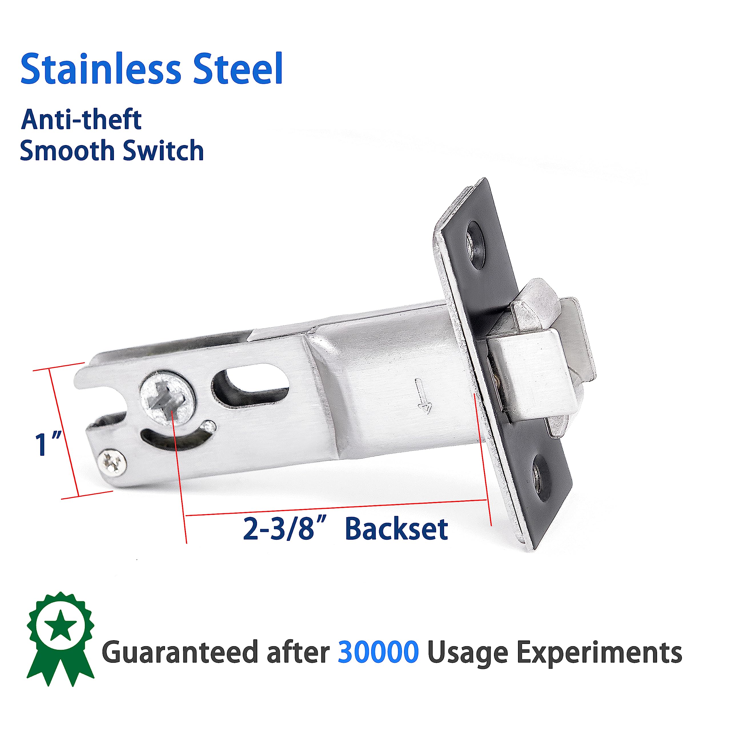 High Quality Material: Alloy steel with electroplated surface brushed nickel, and matte Black, corrosion resistant. Specification: 2-1/16” diameter hole, 1” diameter latch hole and 2-3/8” backseat.