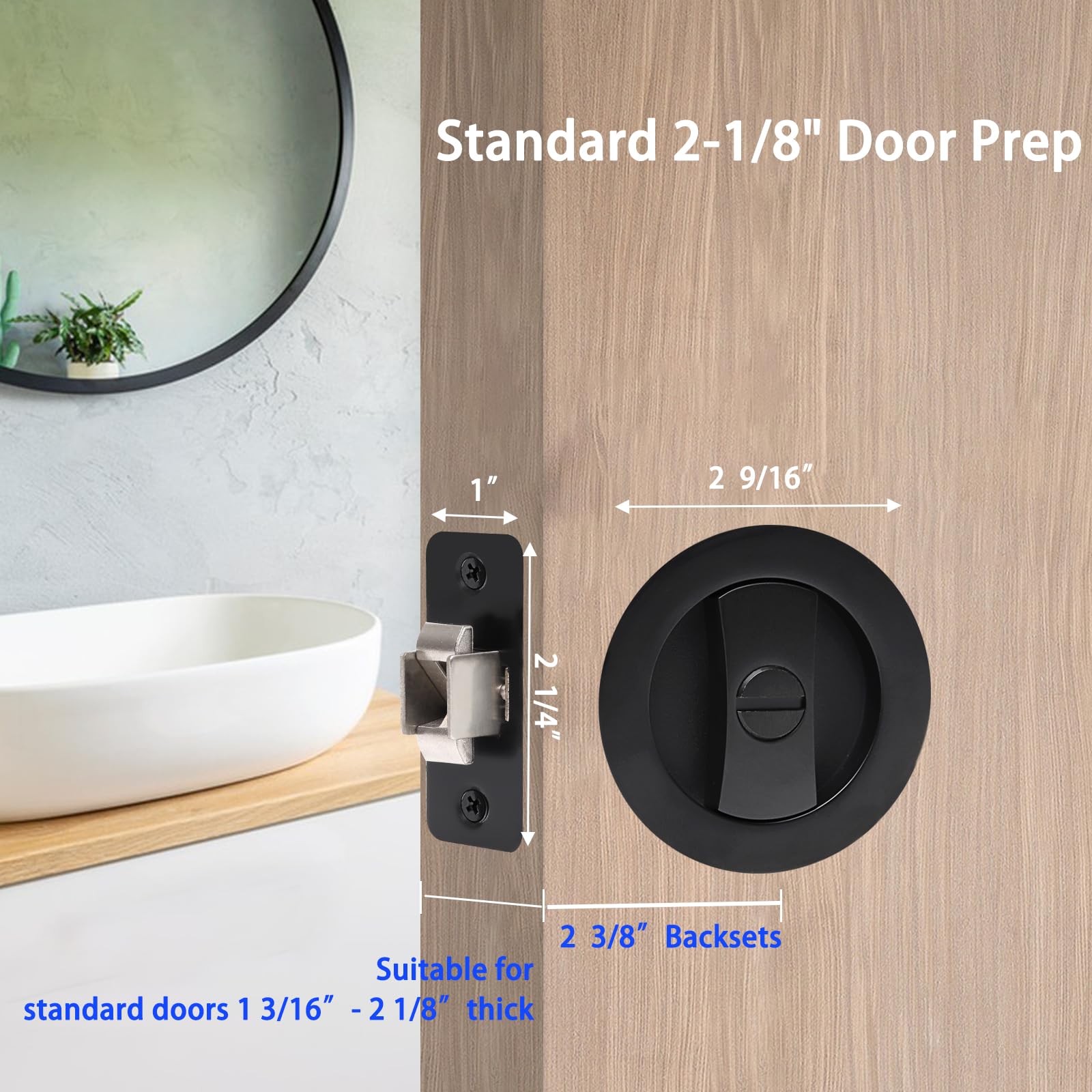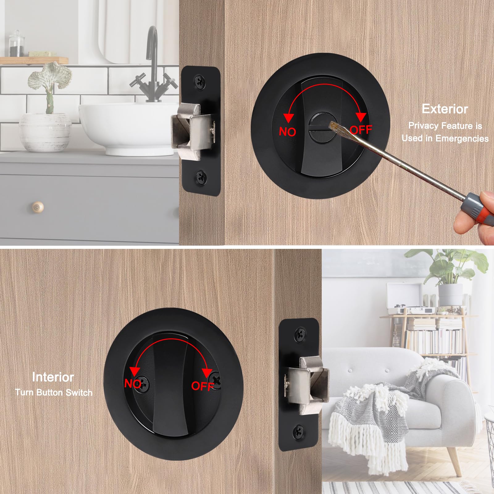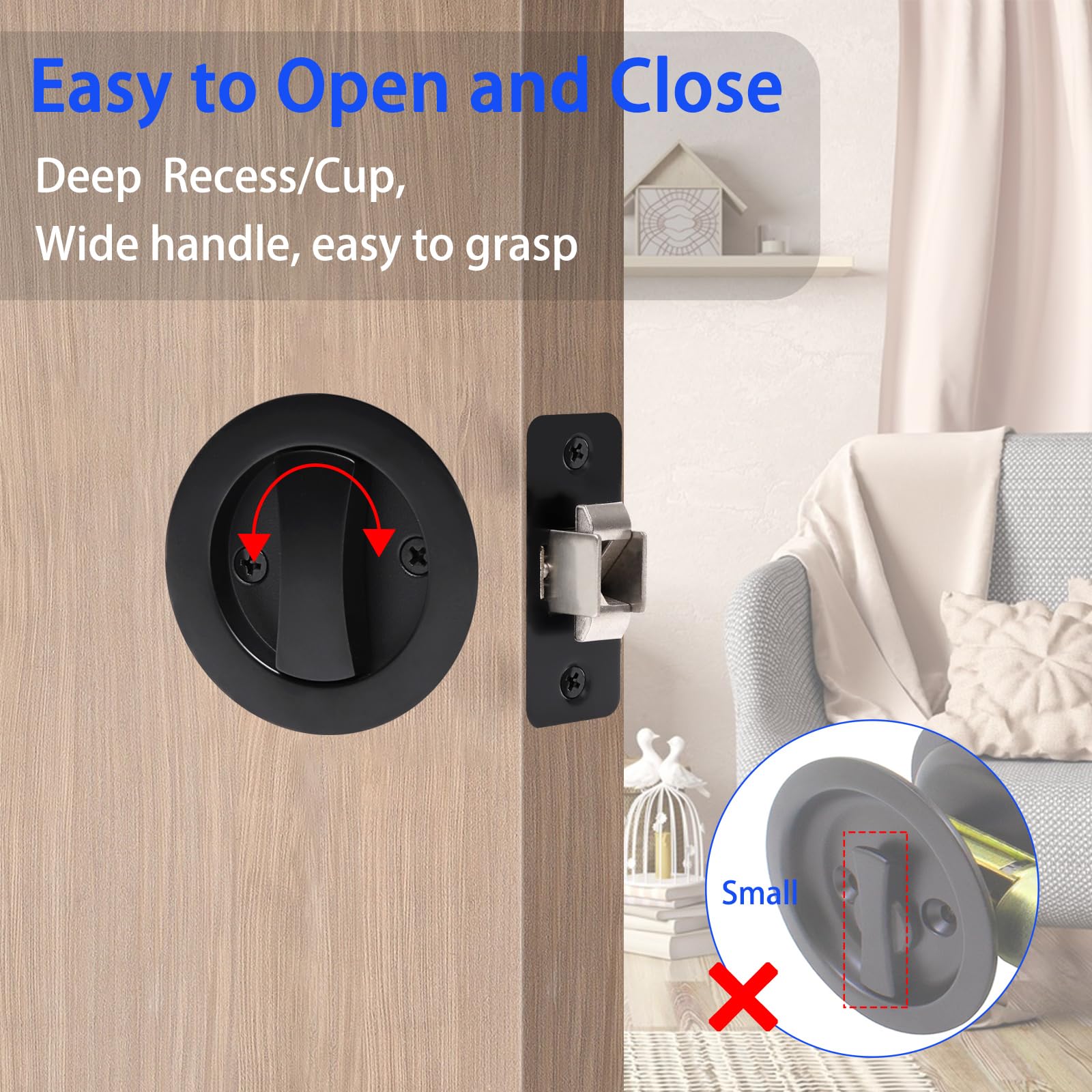 Large Locking Lever: Large locking lever make this lock user-friendly and accessible to people of all ages and abilities.This pocket door privacy lock and pull has a wide, easy grip design and is for left or right handed doors.