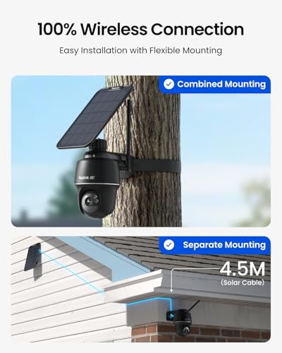 100% Wireless Installation + Detachable Solar Panel: No wiring needed. Easy, flexible setup with a detachable 3W solar panel. Just 20 minutes of sunlight charging per day can power the camera every day.